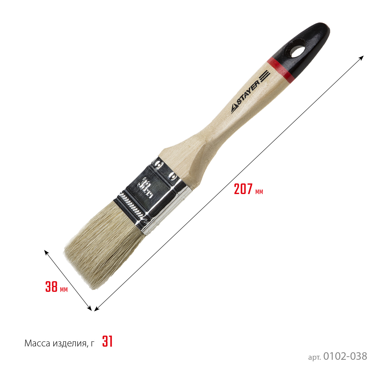 STAYER UNIVERSAL - EURO, 38 мм, 1.5″, светлая натуральная щетина, деревянная ручка, все виды ЛКМ, плоская кисть (0102-038)