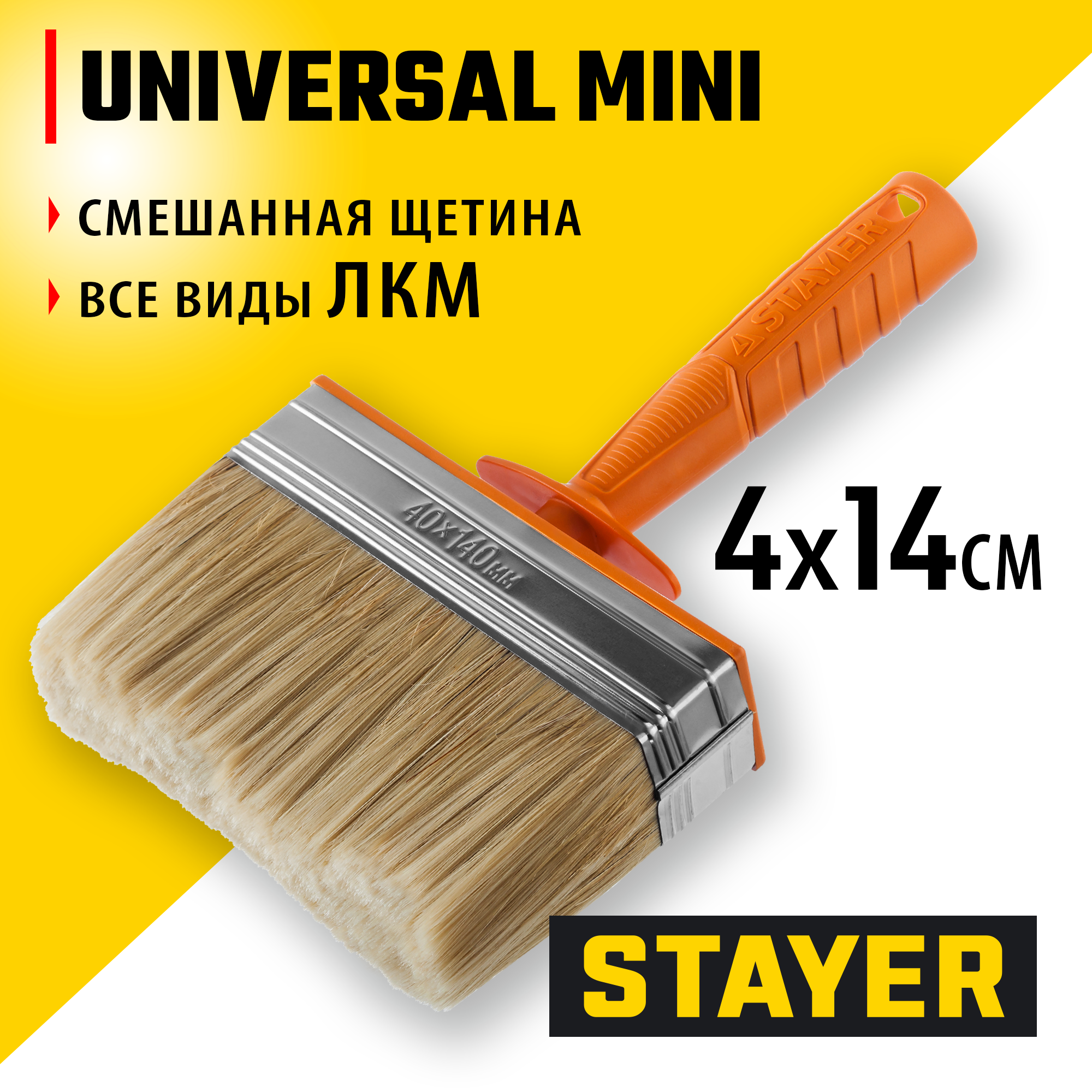 STAYER Universal MINI, 4 х 14 см, светлая натуральная щетина, пластмассовый корпус, все виды ЛКМ, макловица, Professional (0182-14)