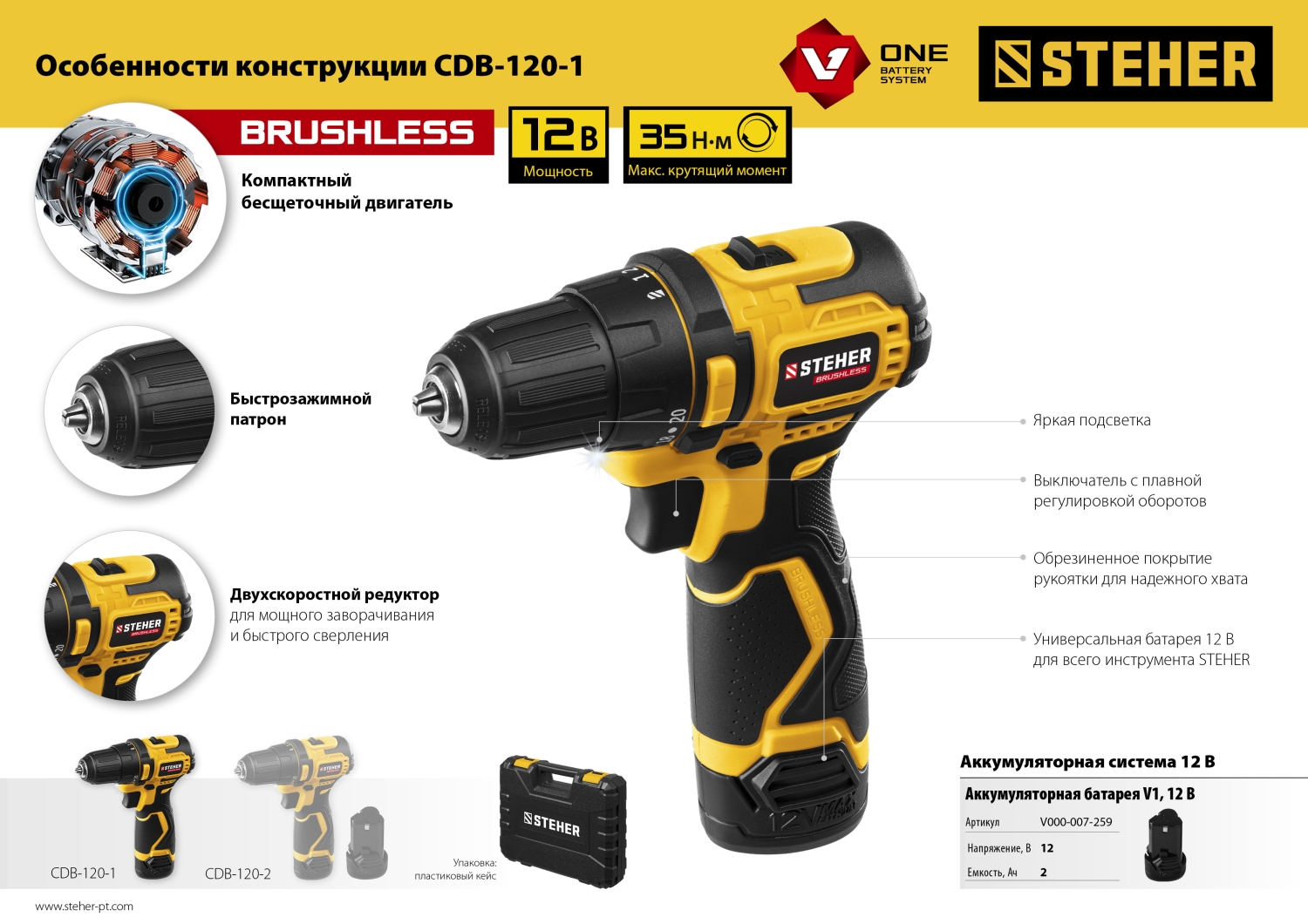 - отсутствие потери мощности в процессе работы - Аккумулятор универсальной системы Li-Ion V1 12 В повышенной емкости 2.0 А*ч позволяет инструменту выдавать более высокие характеристики