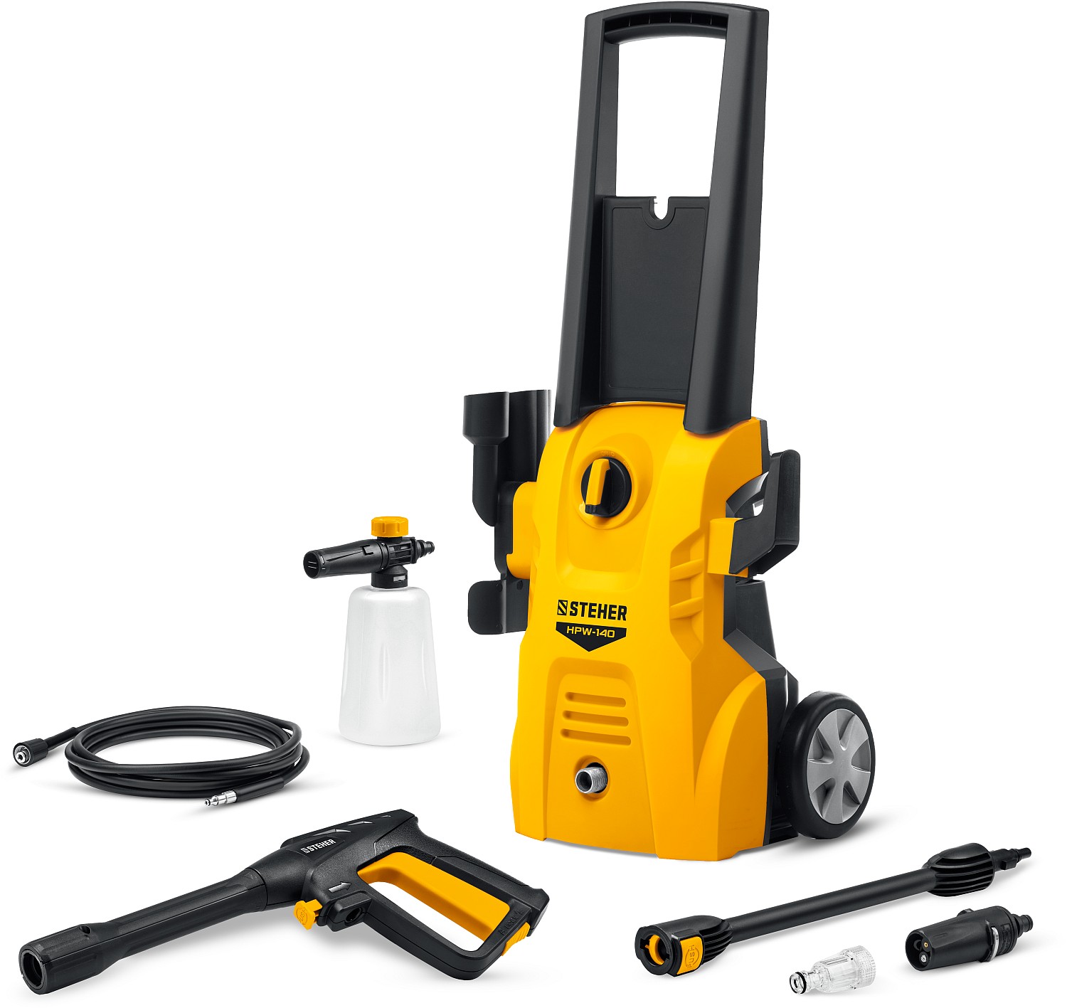 Мощное изделие для удаления любых загрязнений при помощи струи воды высокого давления. Благодаря системе полной остановки, помпа не работает при ненажатом пистолете – это экономит воду и ресурс изделия при неизбежных паузах в работе. Элегантный дизайн и удобная конструкция с держателями для аксессуаров делают работу с изделием комфортной. Регулировка выходной струи позволяет обрабатывать различные поверхности - автомобили, стены, велосипеды, напольные покрытия и т.п.
