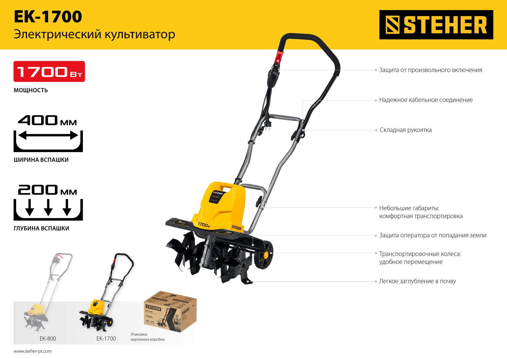 Манёвренный культиватор с синхронным двигателем мощностью 1700 Вт используется для рыхления и культивации почвы на небольшом участках, парниках и теплицах. Оснащен металлическими фрезами с шириной захвата 40 см и обрабатывает почву на глубину до 20 см.