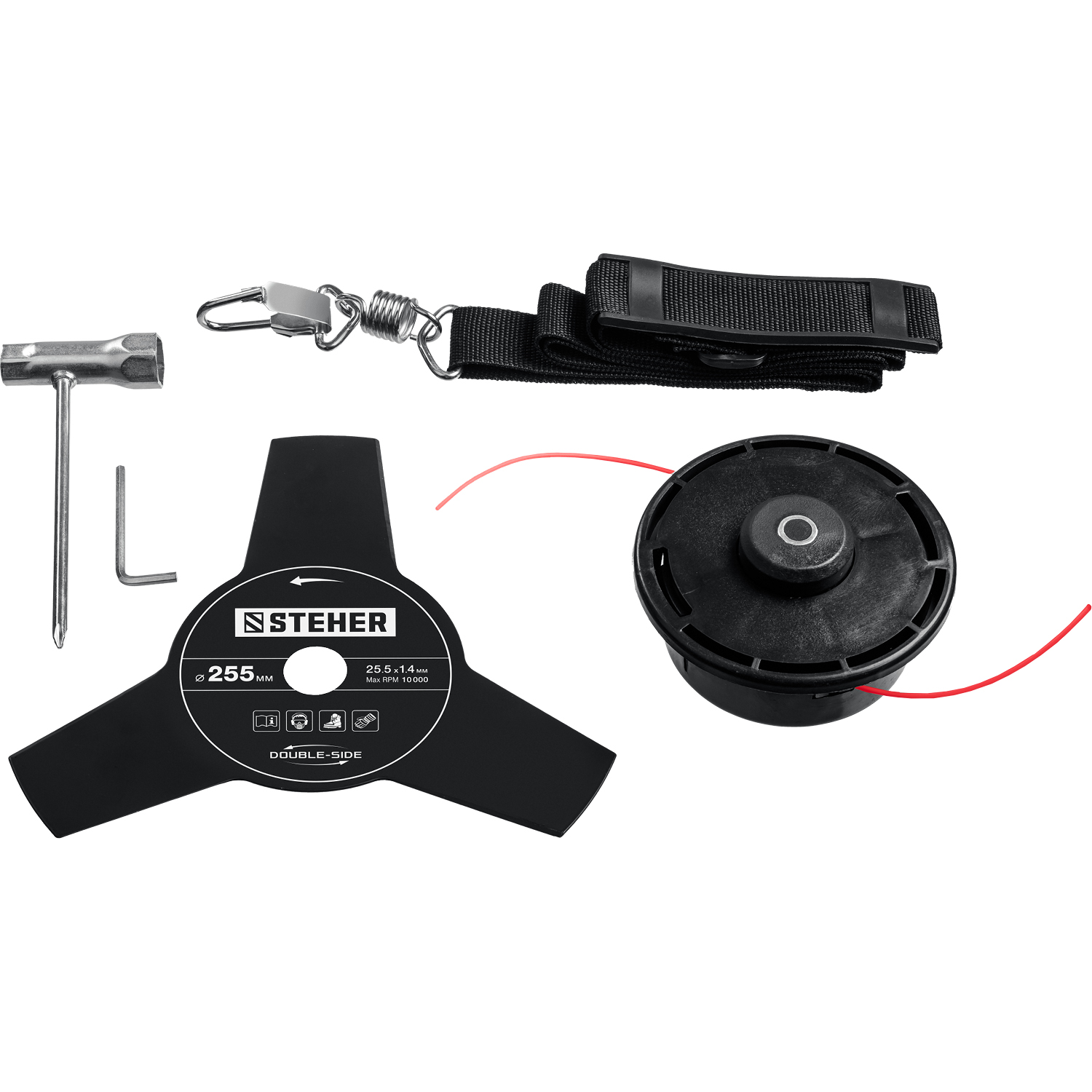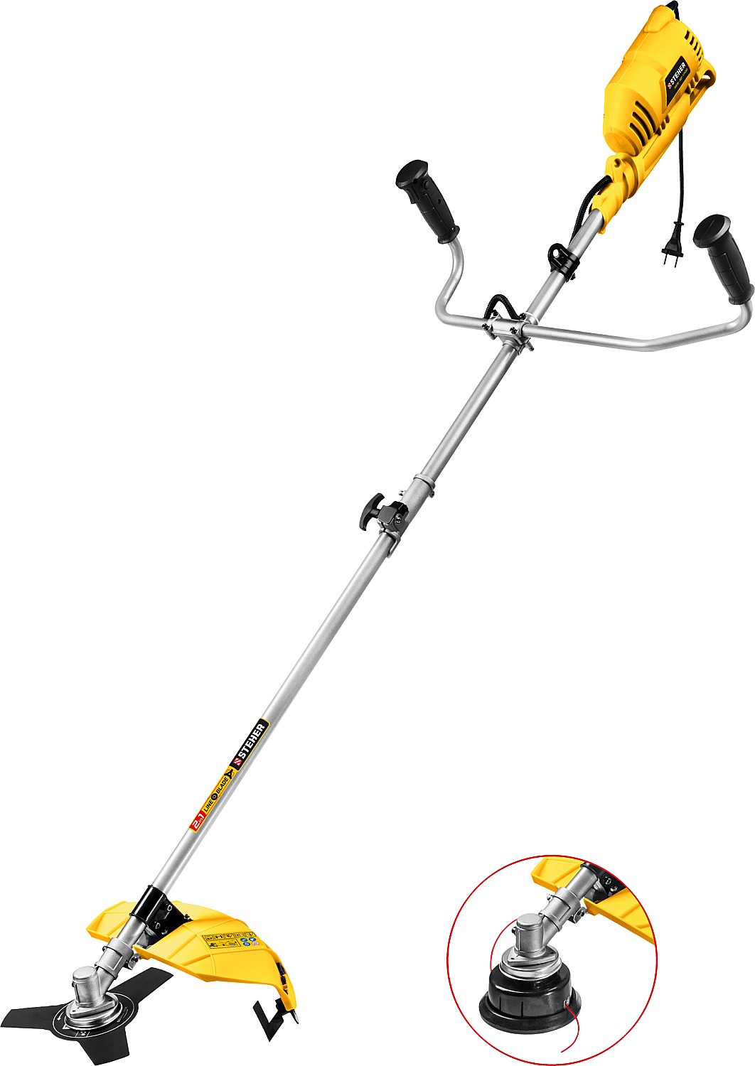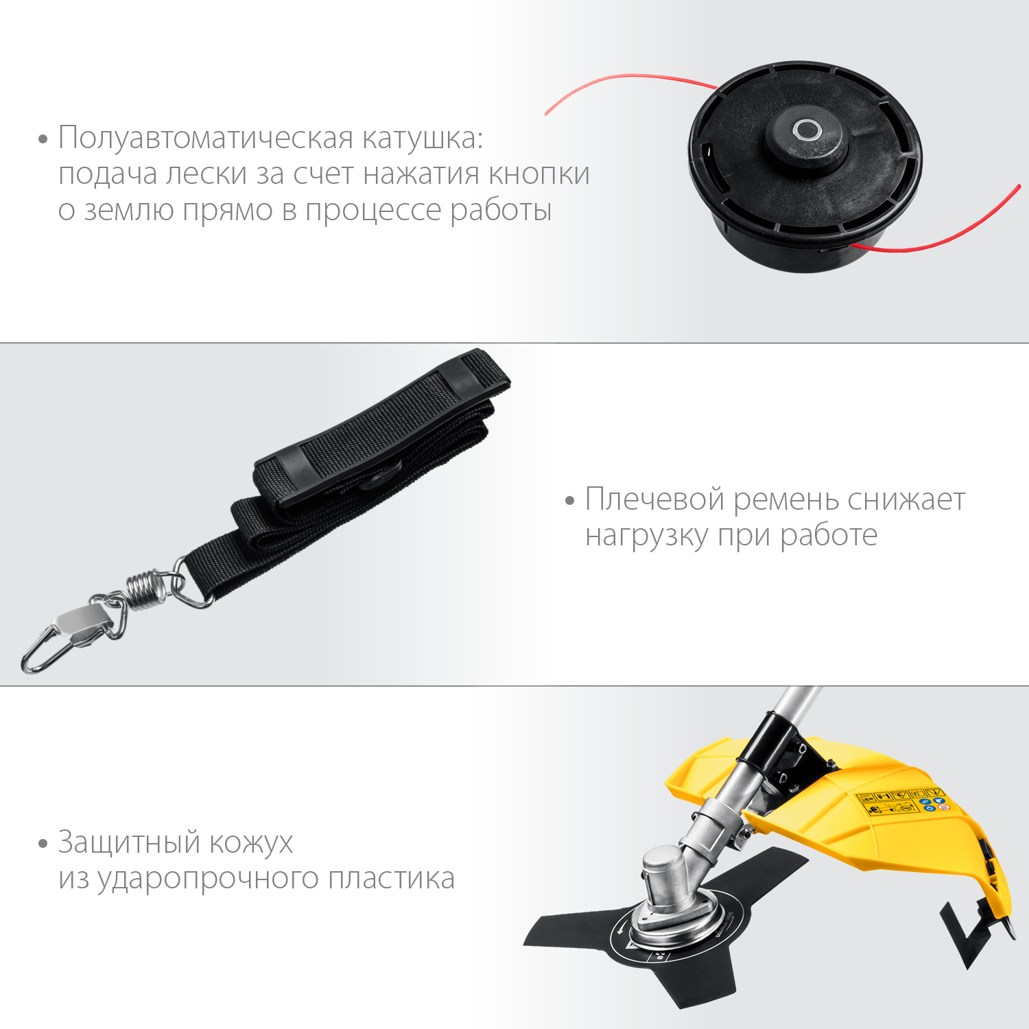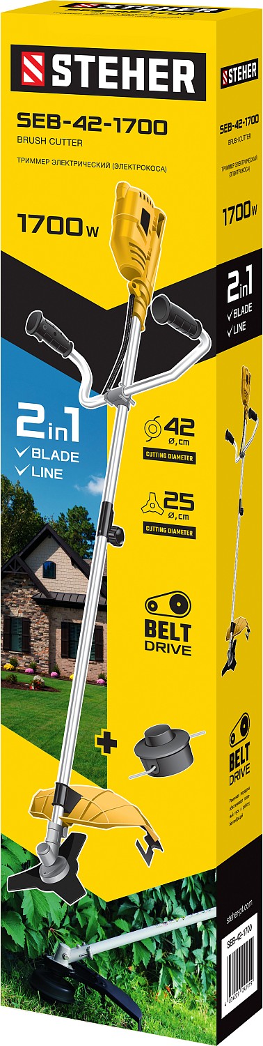 - Возможность установки двух видов режущего инструмента - лески и ножа - делают изделие универсальным