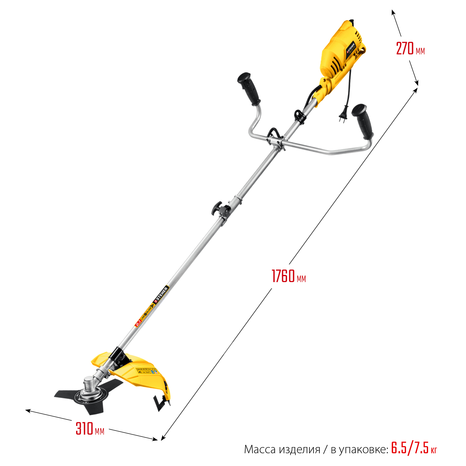 - Идеальная развесовка (благодаря верхнему расположению двигателя) и плечевой ремень увеличивают маневренность и облегчают эксплуатацию