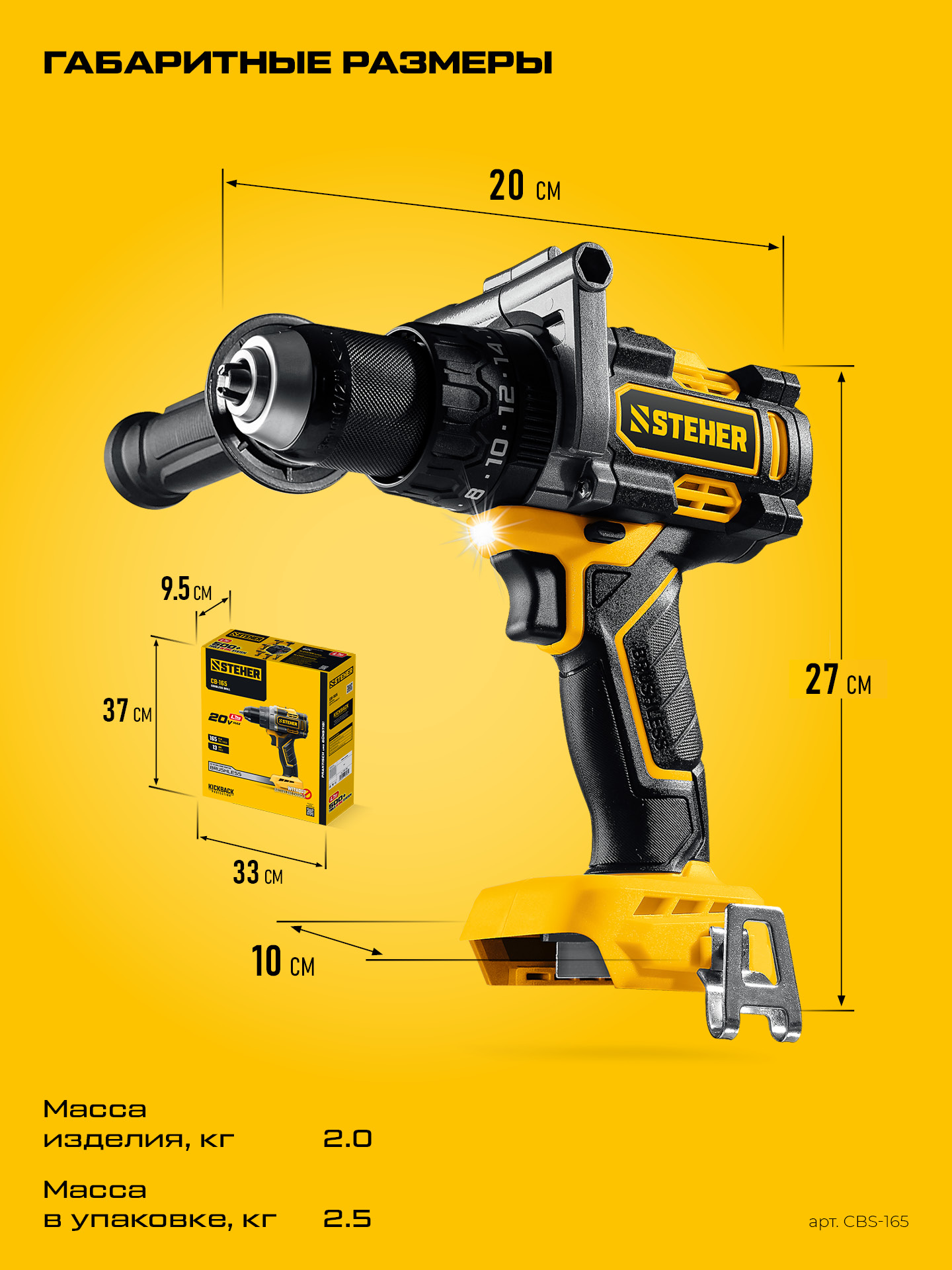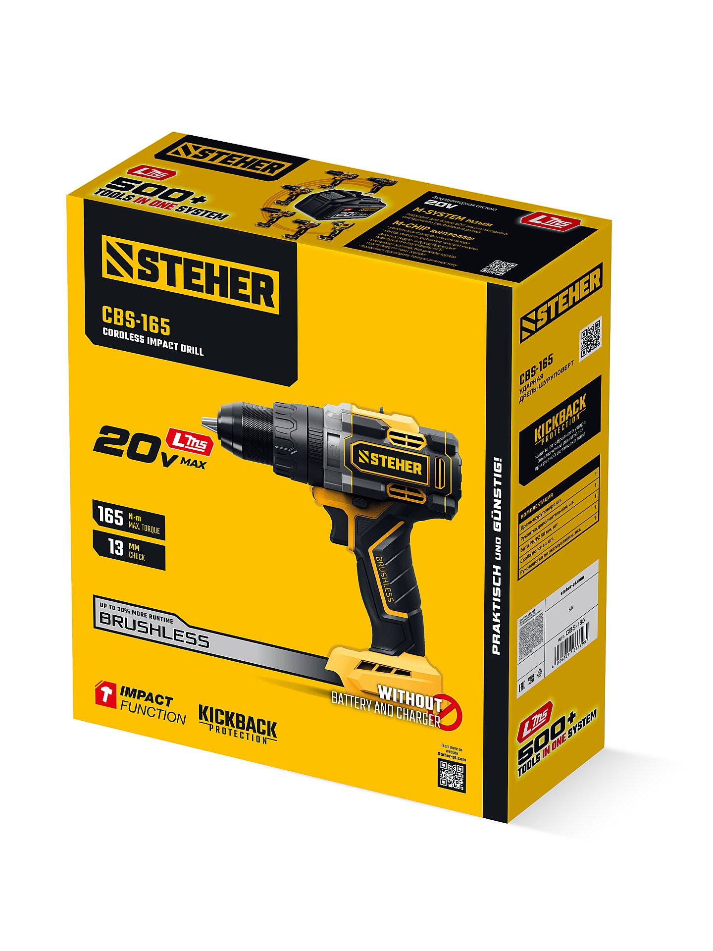 Бесщеточная ударная дрель-шуруповерт STEHER системы LMS с максимальным крутящим моментом 165 Нм предназначена для работы с самым крупным крепежом (саморезы до 12 мм диаметром) и сверления отверстий до 40 мм в дереве. Встроенная защита от обратного удара предотвращает повреждение кисти при резкой блокировке вала. Расширенная функциональность за счет ударного режима работы