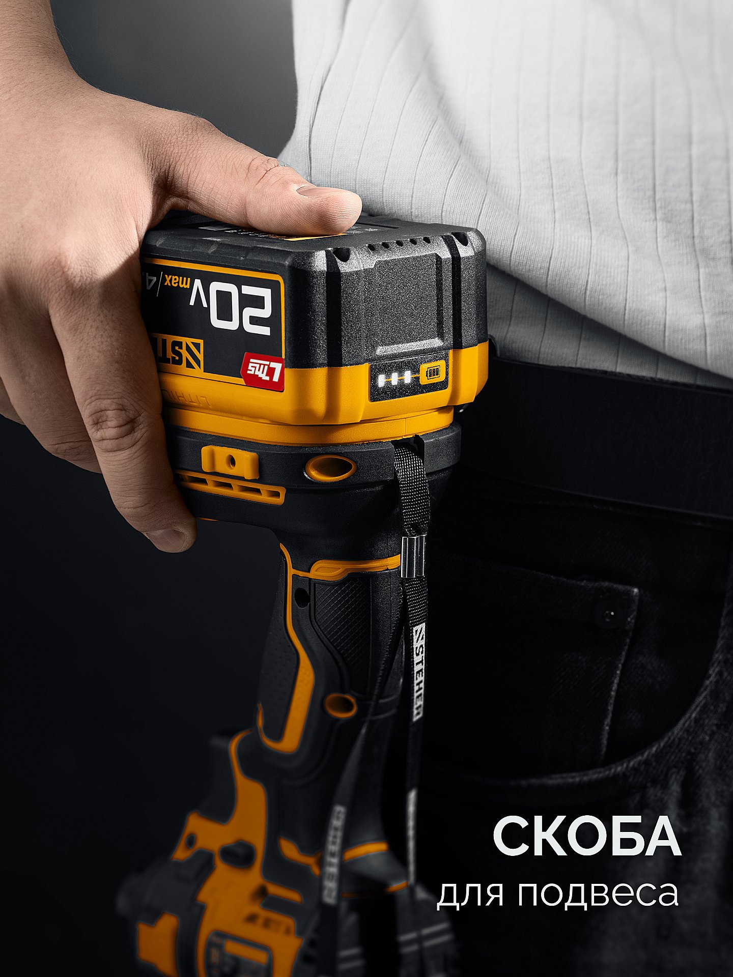 Винтоверт оснащен BRUSHLESS двигателем, который обеспечивает высокие удельные характеристики и долгий срок службы. Высокая частота вращения позволяет закручивать крепеж быстрее. Имеет современную аккумуляторную систему LMS с 1 АКБ в комлекте, совместимую с одним известным брендом.