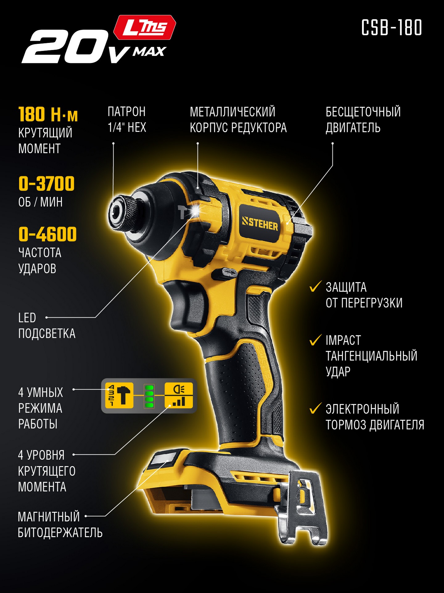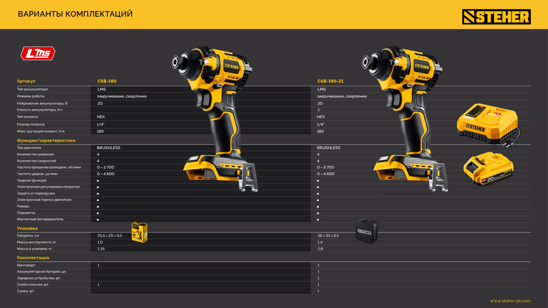 Винтоверт оснащен BRUSHLESS двигателем, который обеспечивает высокие удельные характеристики и долгий срок службы. Высокая частота вращения позволяет закручивать крепеж быстрее. Имеет современную аккумуляторную систему LMS, совместимую с одним известным брендом.
