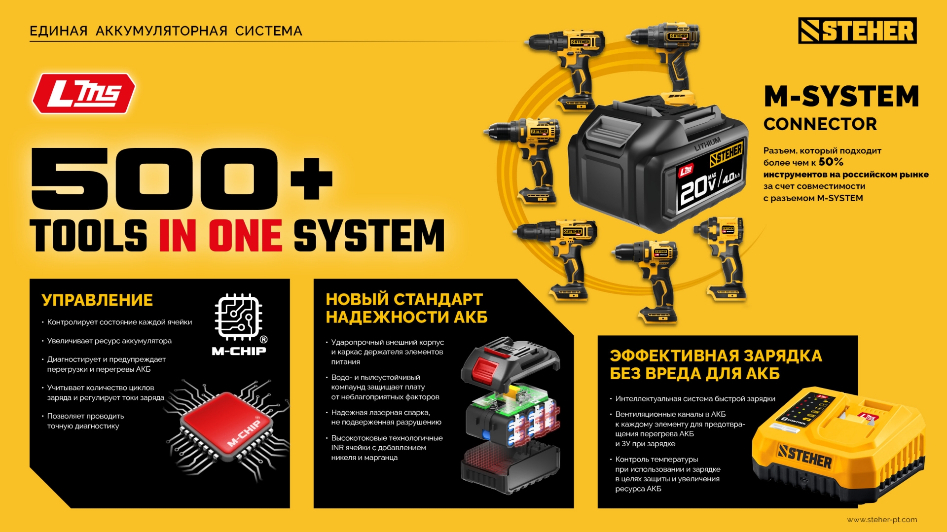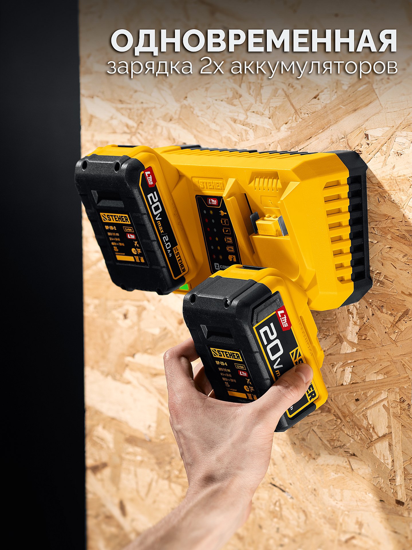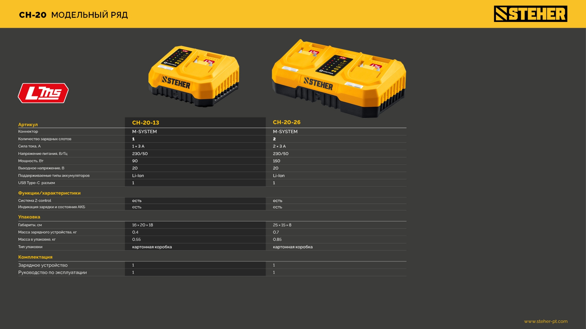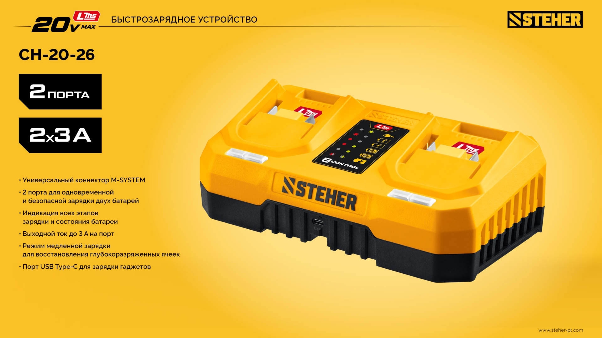 Полностью цифровое интеллектуальное устройство для бережной и максимальной (в отличие от устройств другого типа) зарядки батареи - для полной отдачи Вашего инструмента STEHER