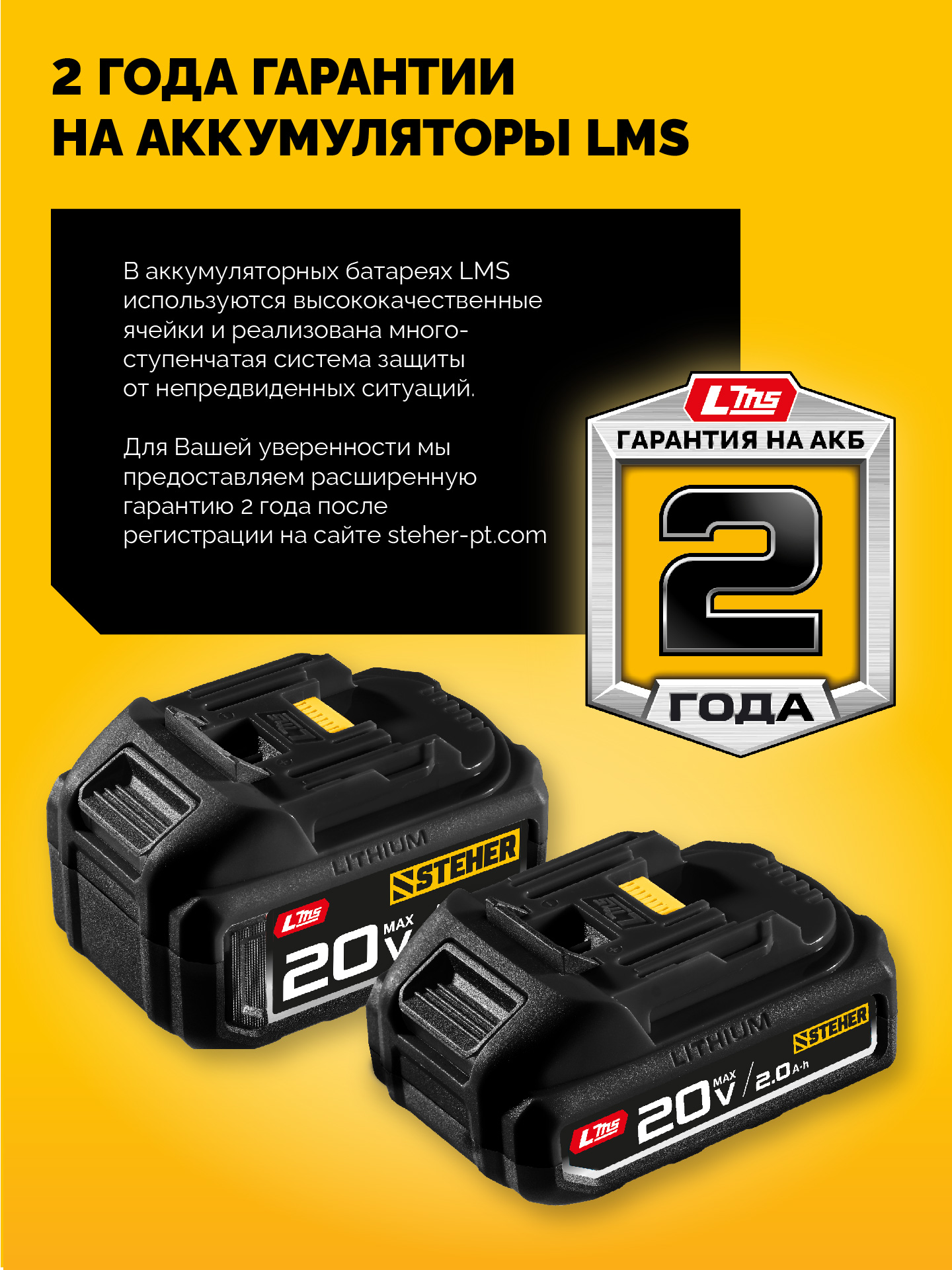Аккумуляторная батарея для инструмента STEHER системы LMS позволит Вам работать еще дольше и производительнее. Усовершенствованная технология элементов обеспечивает повышенные удельные характеристики и длительный срок службы