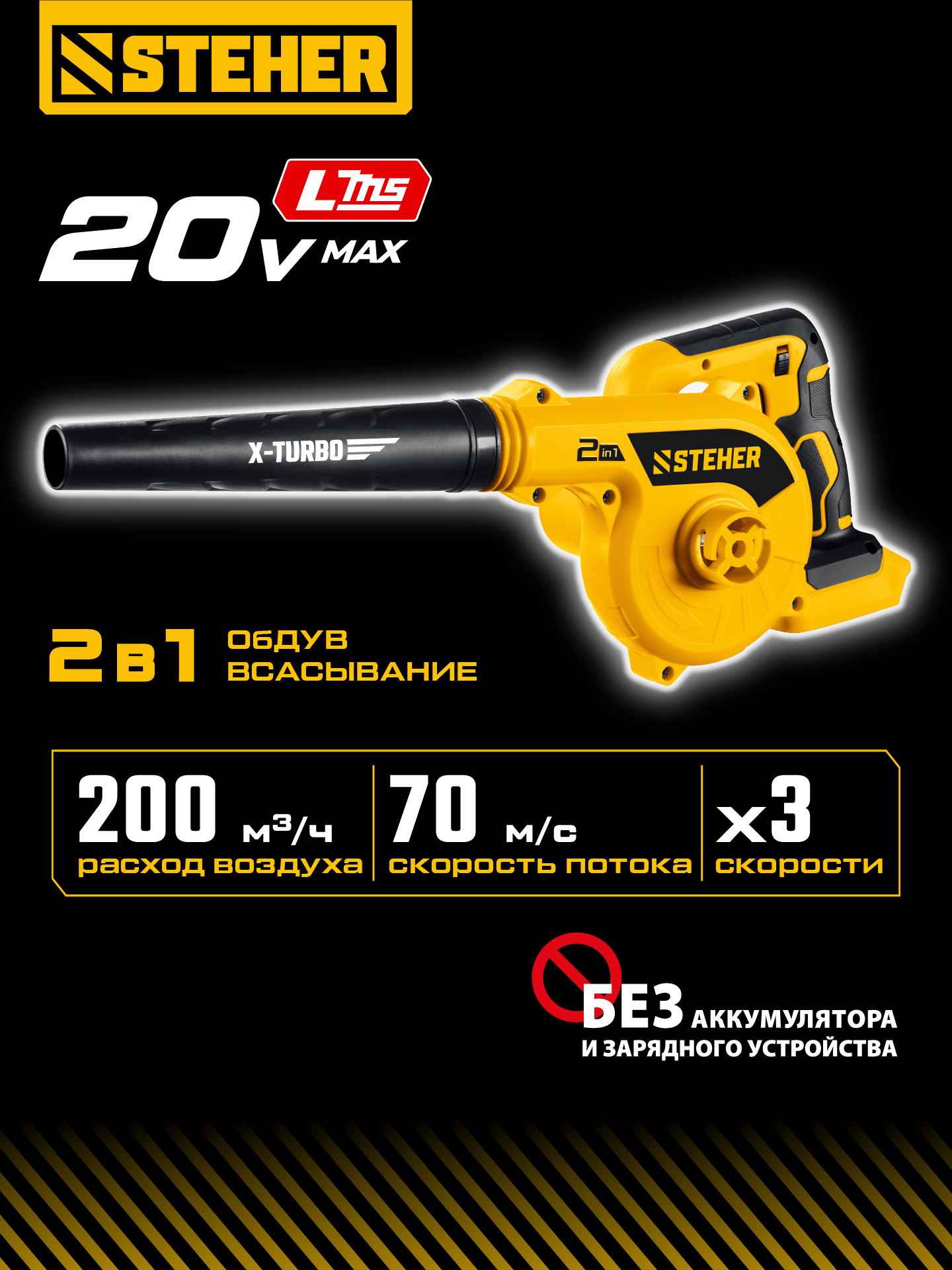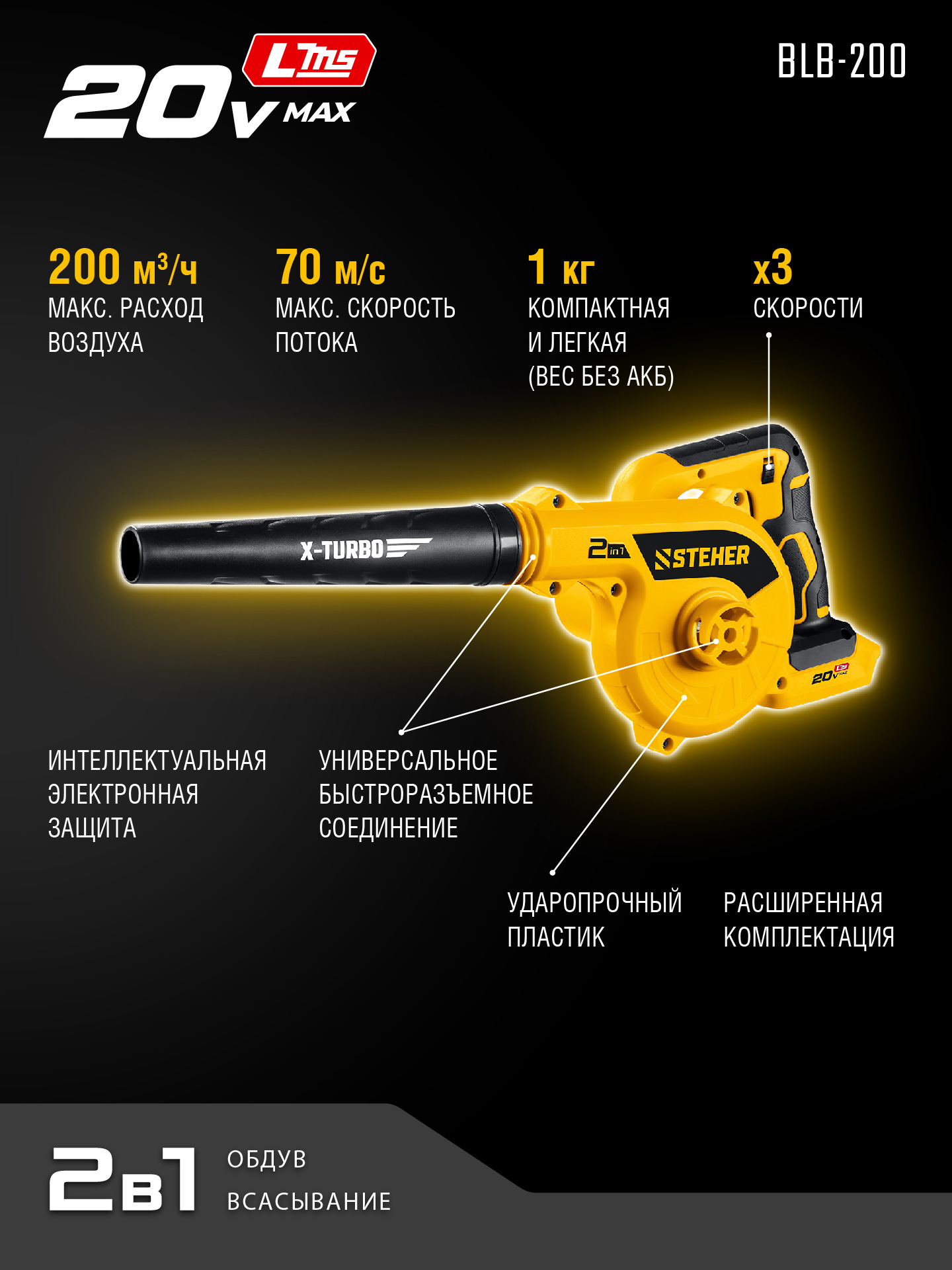 - 2 в 1 - совмещает функции обдува и всасывания, а также может использоваться в качестве насоса