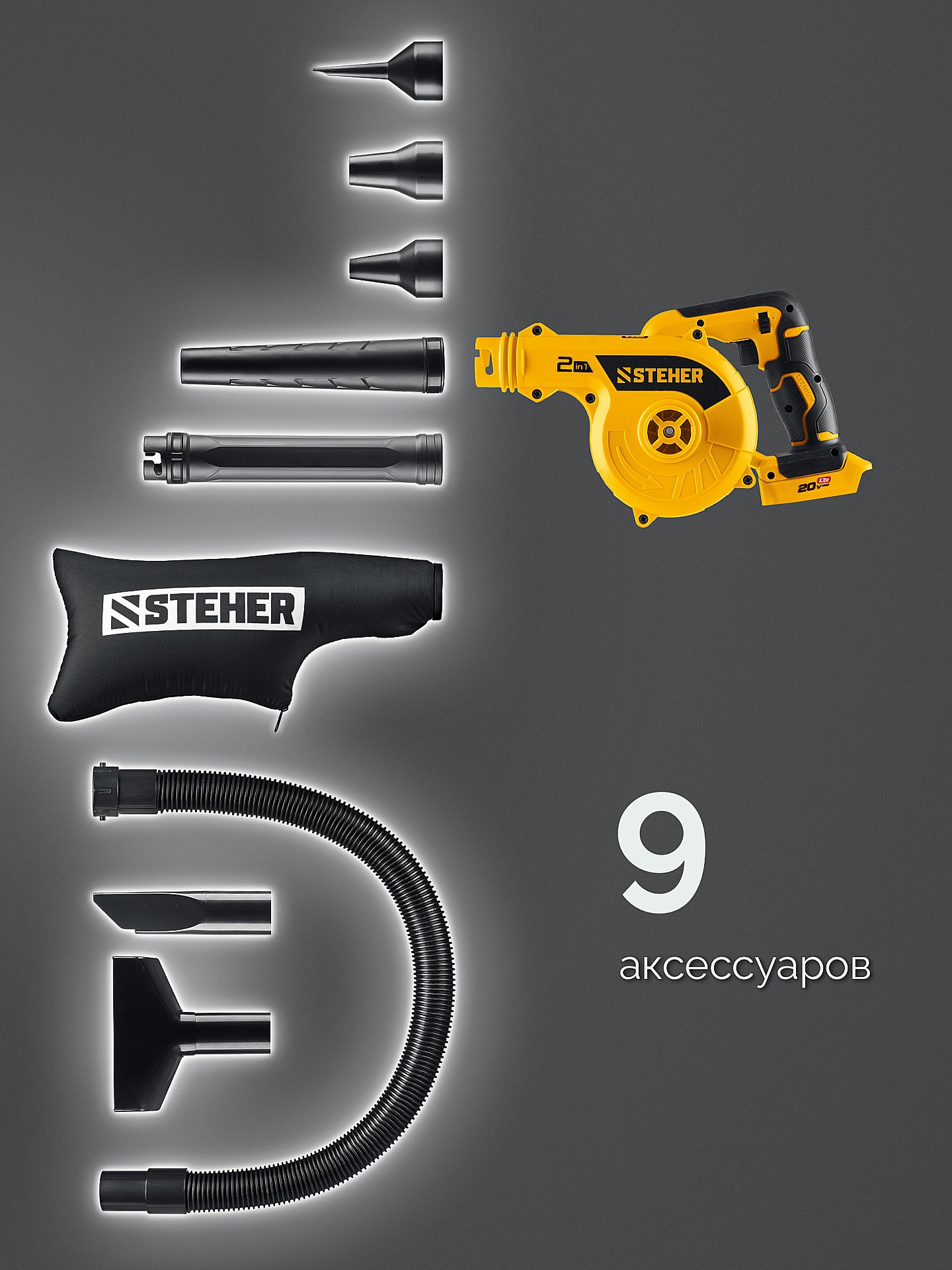 Легкая и компактная аккумуляторная воздуходувка-пылесос - универсальный инструмент, который прекрасно подходит для уборки на садовых участках, поддержания порядка в рабочей зоне, продувки компьютеров и бытовой техники от пыли, раздувания мангала, надувания и сдувания бассейнов, матрацев и других изделий. В зимнее она поможет очистить машину от снега. В комплект входят мешок для мусора, шланг и специальные насадки.