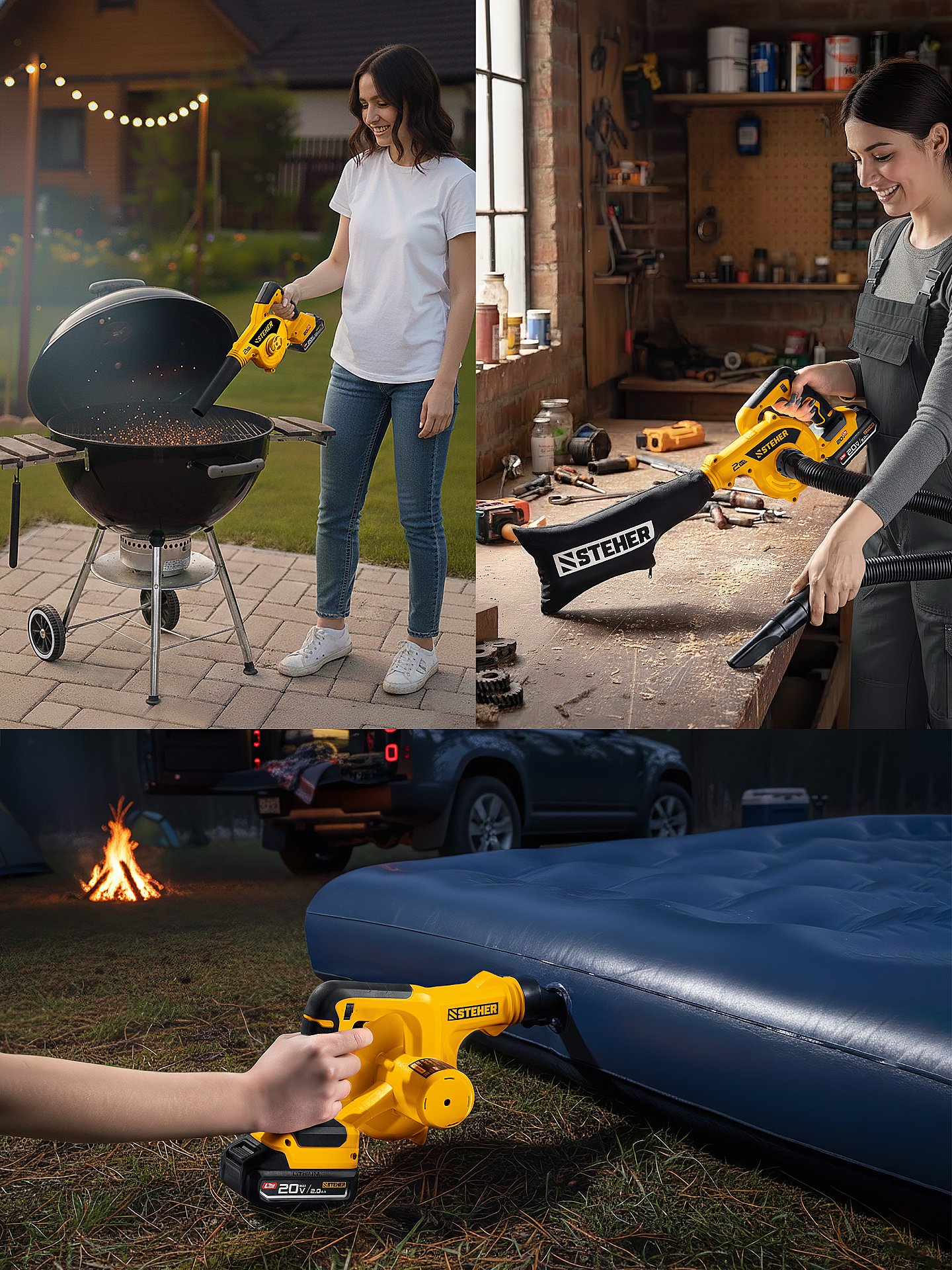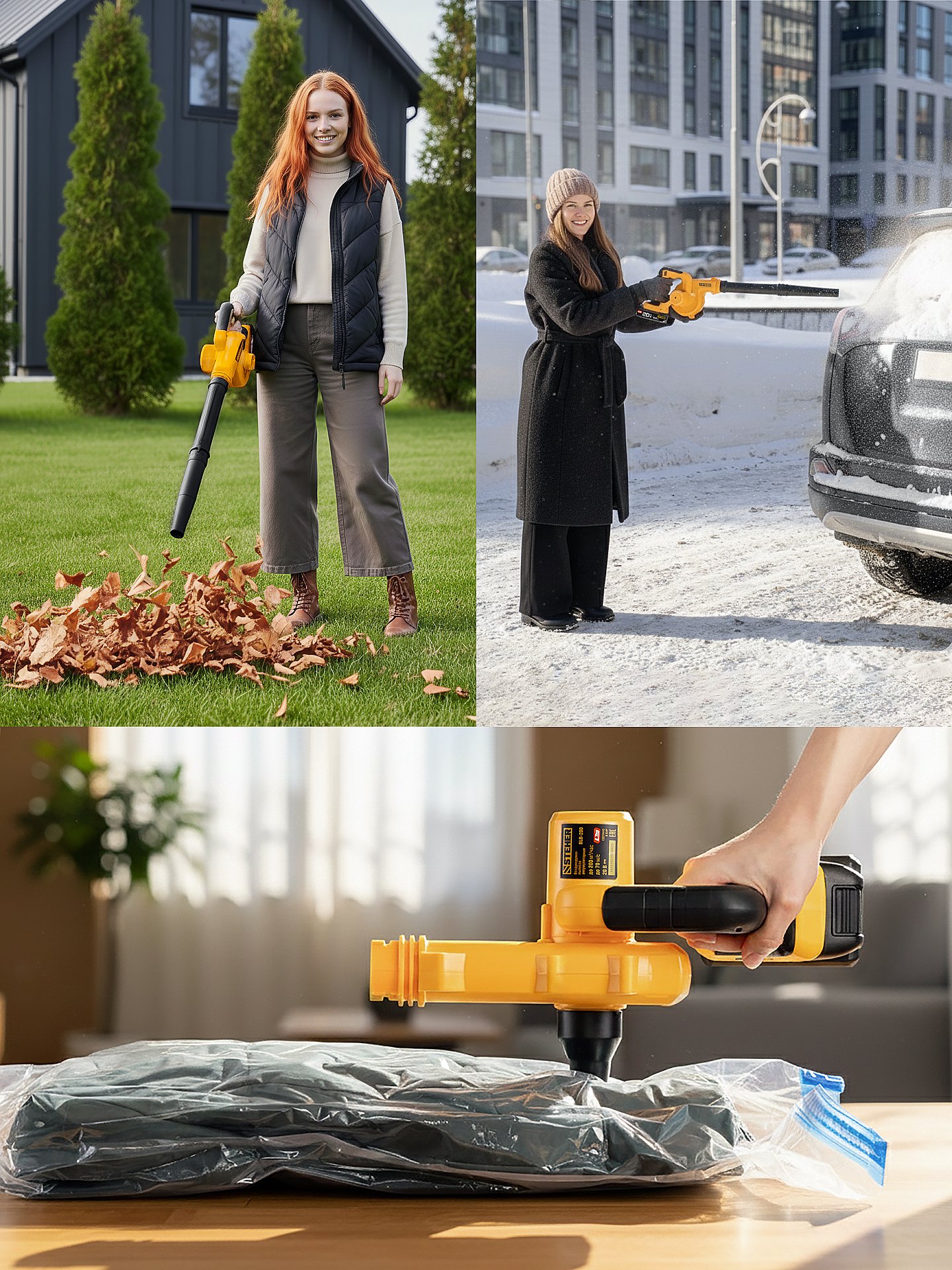 Для уборки листьев, мелкого мусора, пыли, накачивания надувных изделий