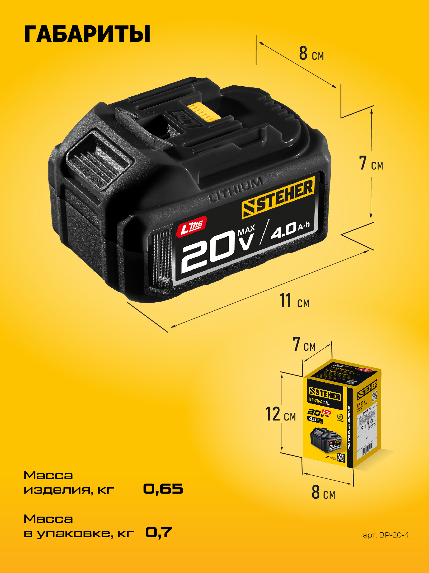 - Емкость 4.0 Ач подходит для длительных работ или работ с повышенными нагрузками