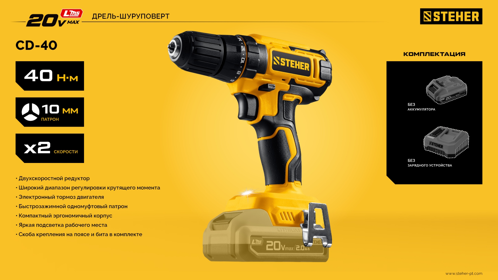 Компактная и недорогая дрель-шуруповерт STEHER предназначена для сверления и заворачивания. Эргономичный дизайн, производительный двигатель и настроенная муфта момента позволяет выполнять точный работы легко и без усилий. Модель без АКБ и БЗУ позволяет сэкономить на покупке при наличии батарей системы LMS