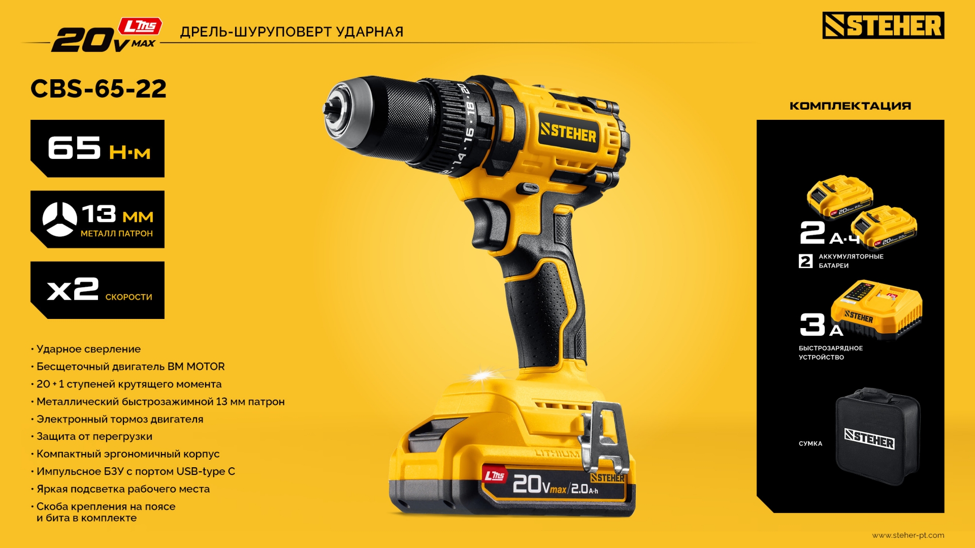 Бесщеточная дрель-шуруповерт STEHER системы LMS с увеличенным крутящим моментом предназначена для быстрого заворачивания саморезов до 8 мм диаметром и сверления отверстий до 30 мм в дереве. Длительная работа от одного заряда обеспечивается эффективным двигателем BRUSHLESS. Расширенная функциональность за счет ударного режима работы. Комплектация с двумя аккумуляторами позволяет работать практически без остановки