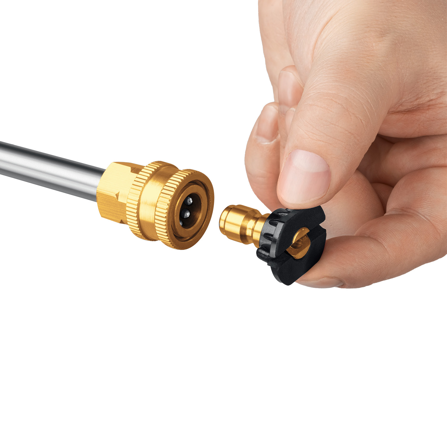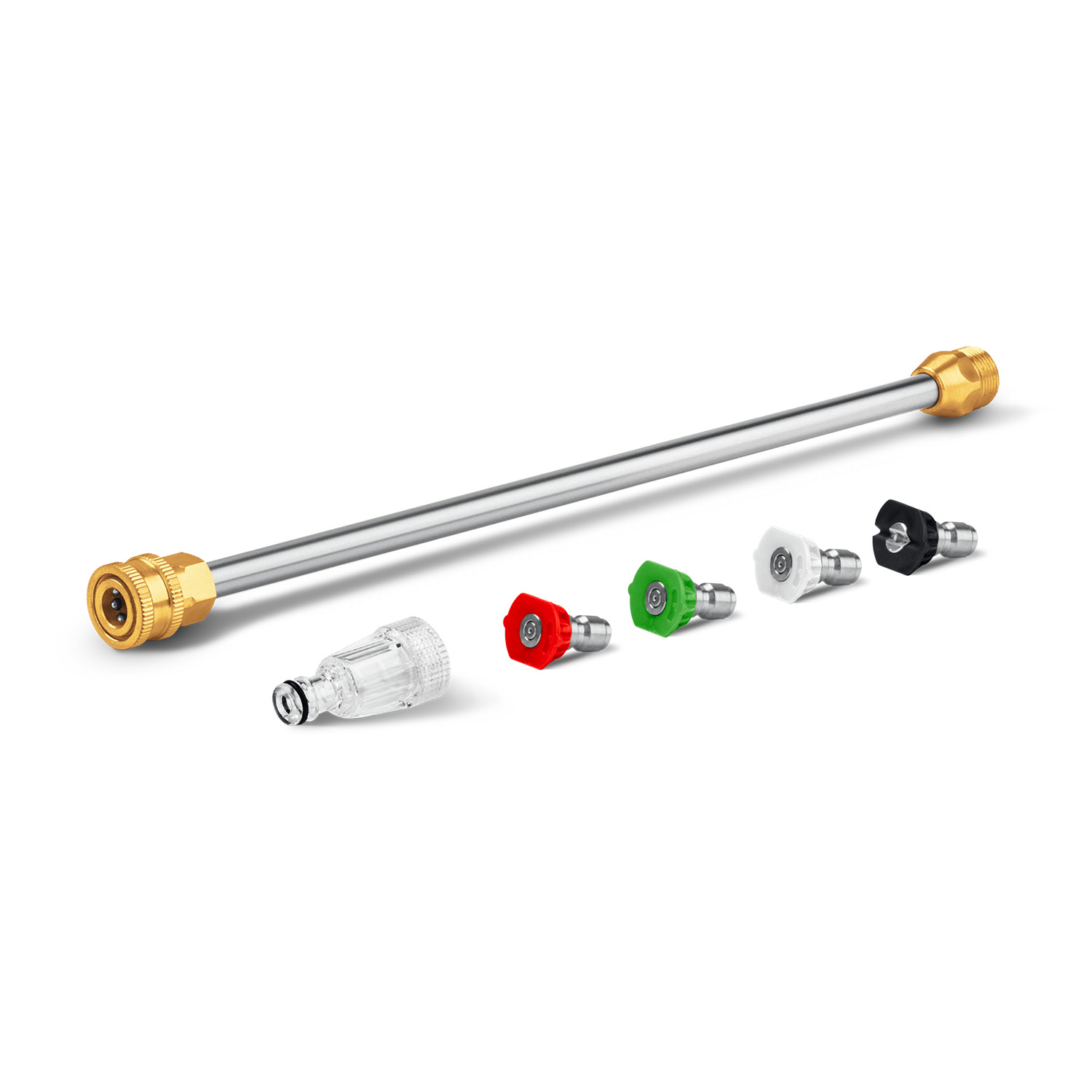 - Сменные быстросъемные насадки с различными углами распыления для формирования струи различного давления, а также нанесения моющего средства: