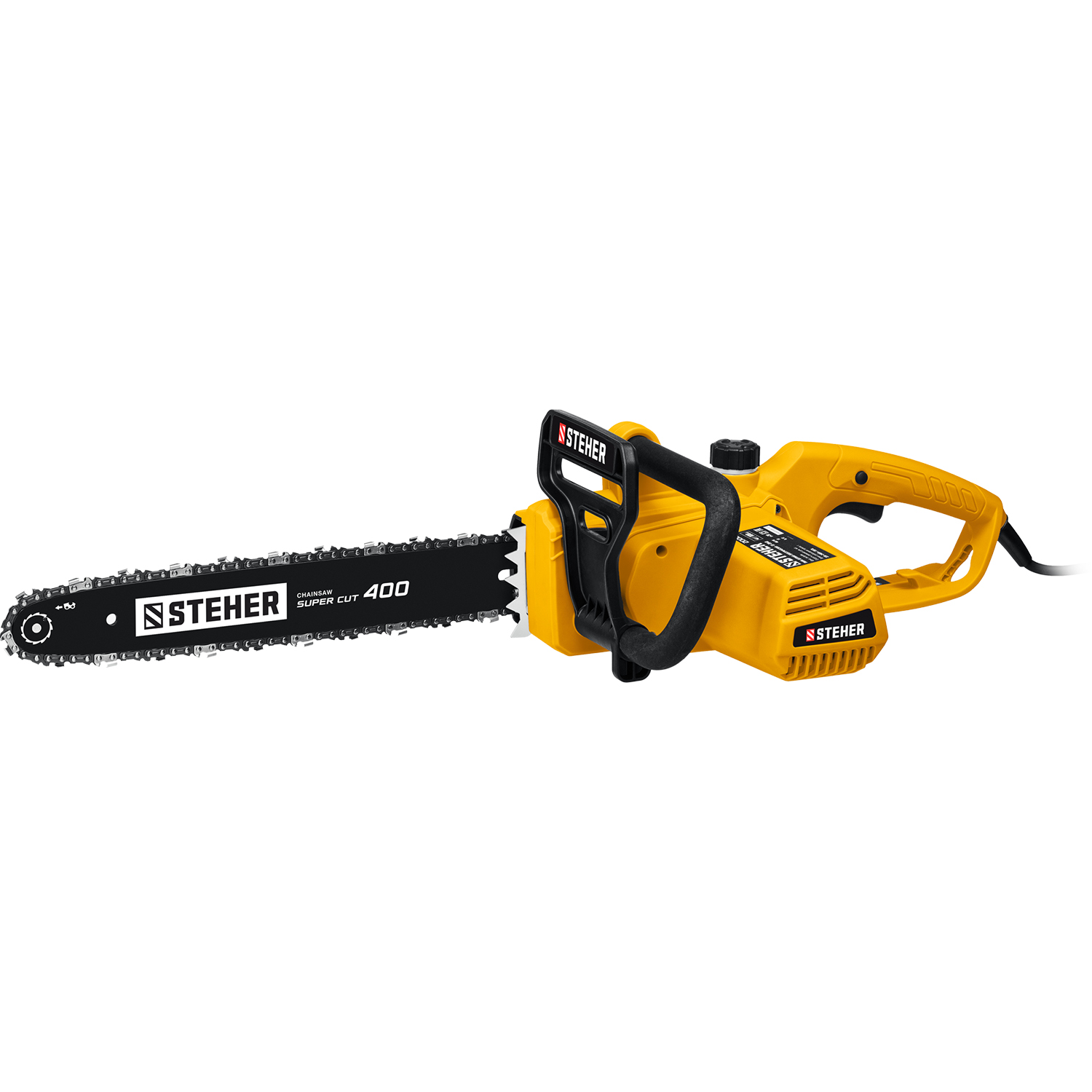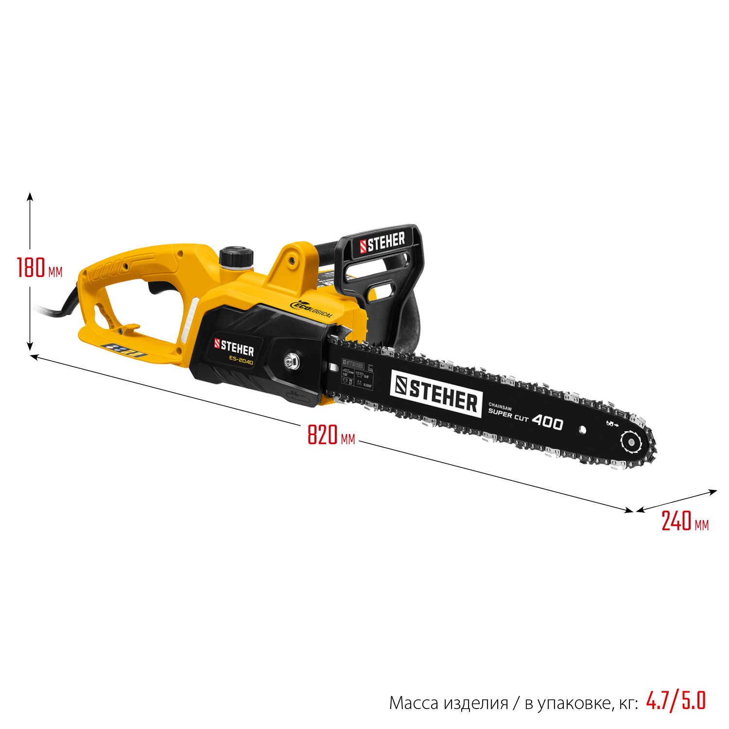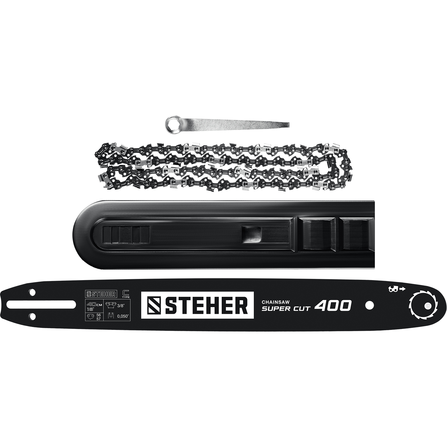 - Шина длиной 400 мм позволяет распиливать заготовки большого диаметра