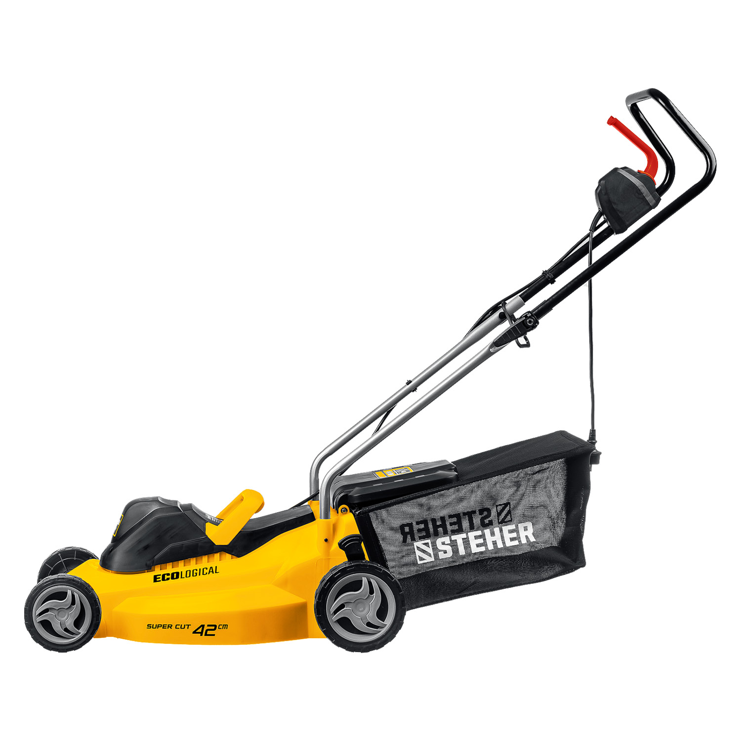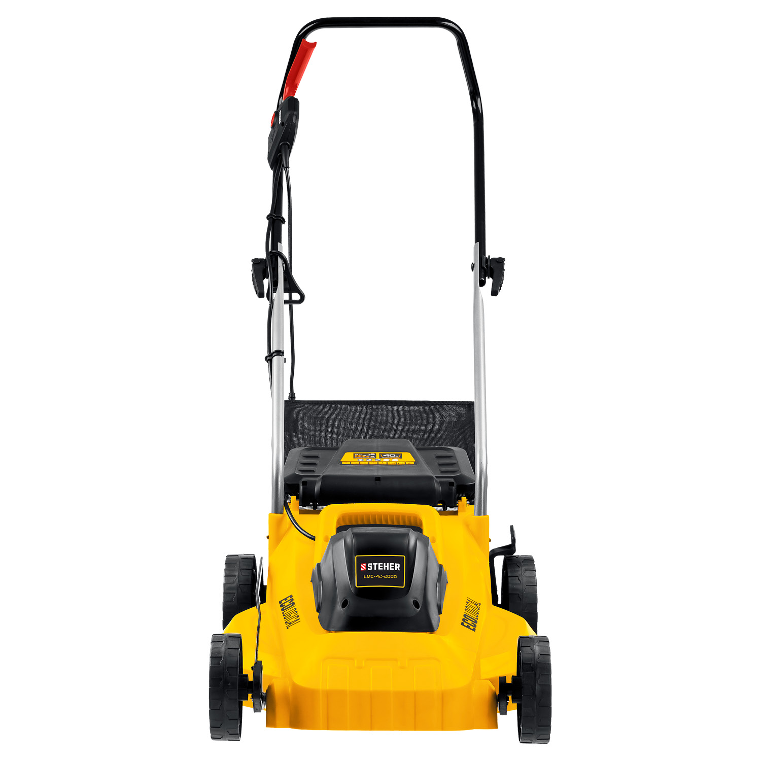 - Облегченные колеса и эргономичная рукоятка облегчают перемещение косилки по газону
