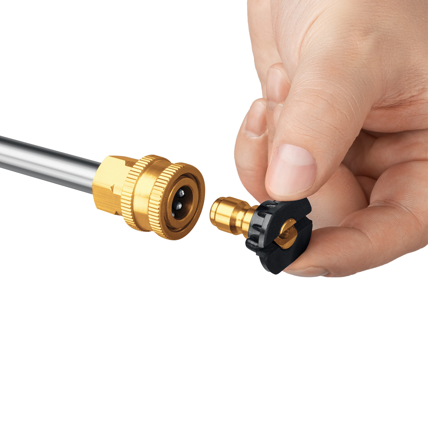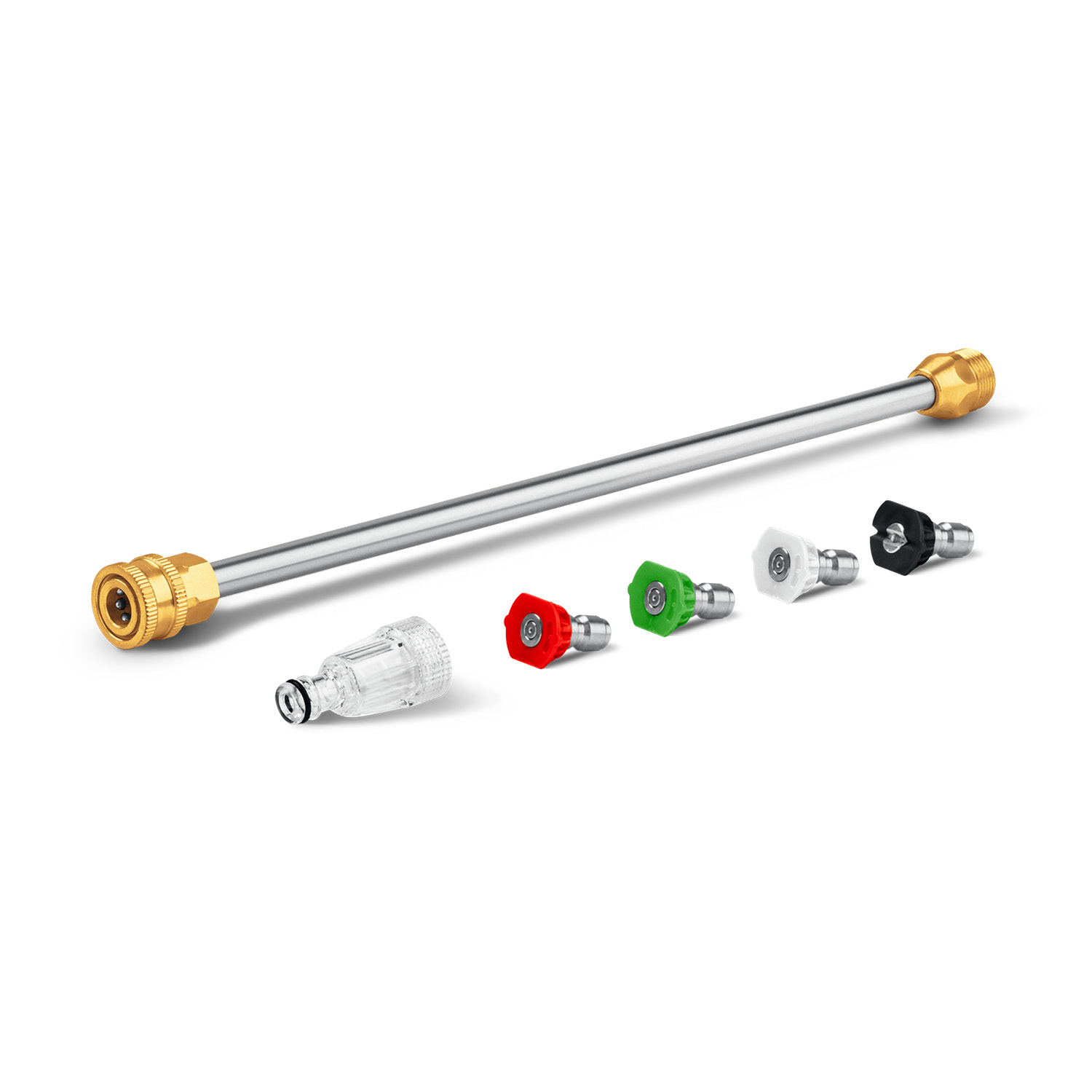 - Сменные быстросъемные насадки с различными углами распыления для формирования струи различного давления, а также нанесения моющего средства: