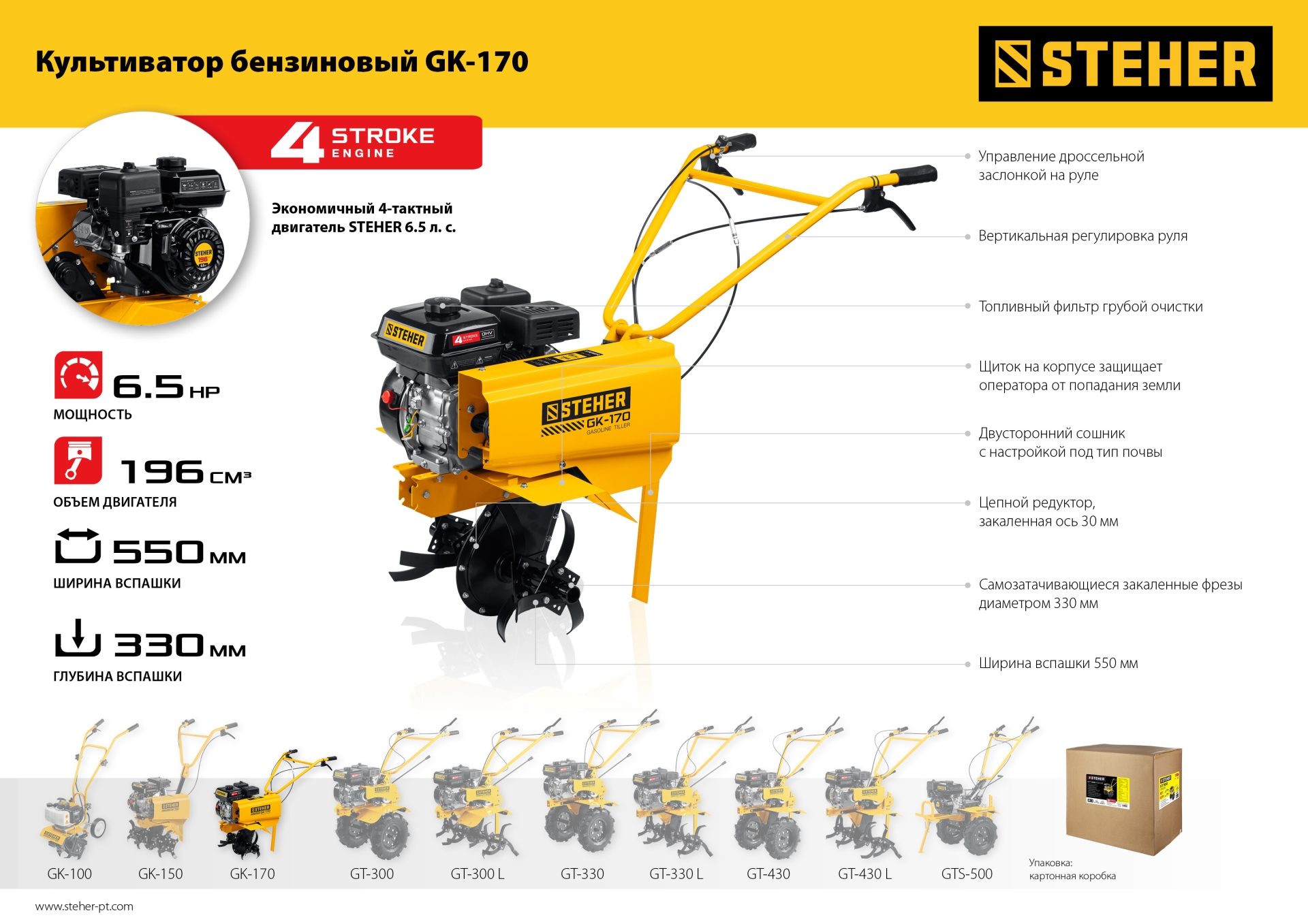 - Рукоять культиватора с возможностью регулировки по вертикали делает управление более комфортным