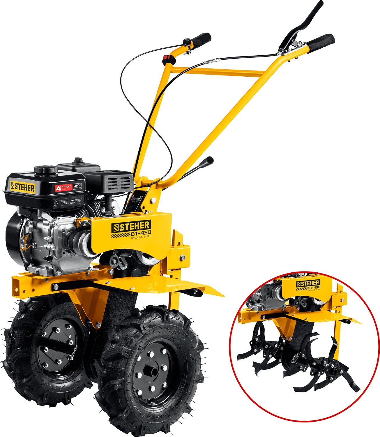 - Рукоять мотоблока с возможностью регулировки по вертикали делает управление более комфортным