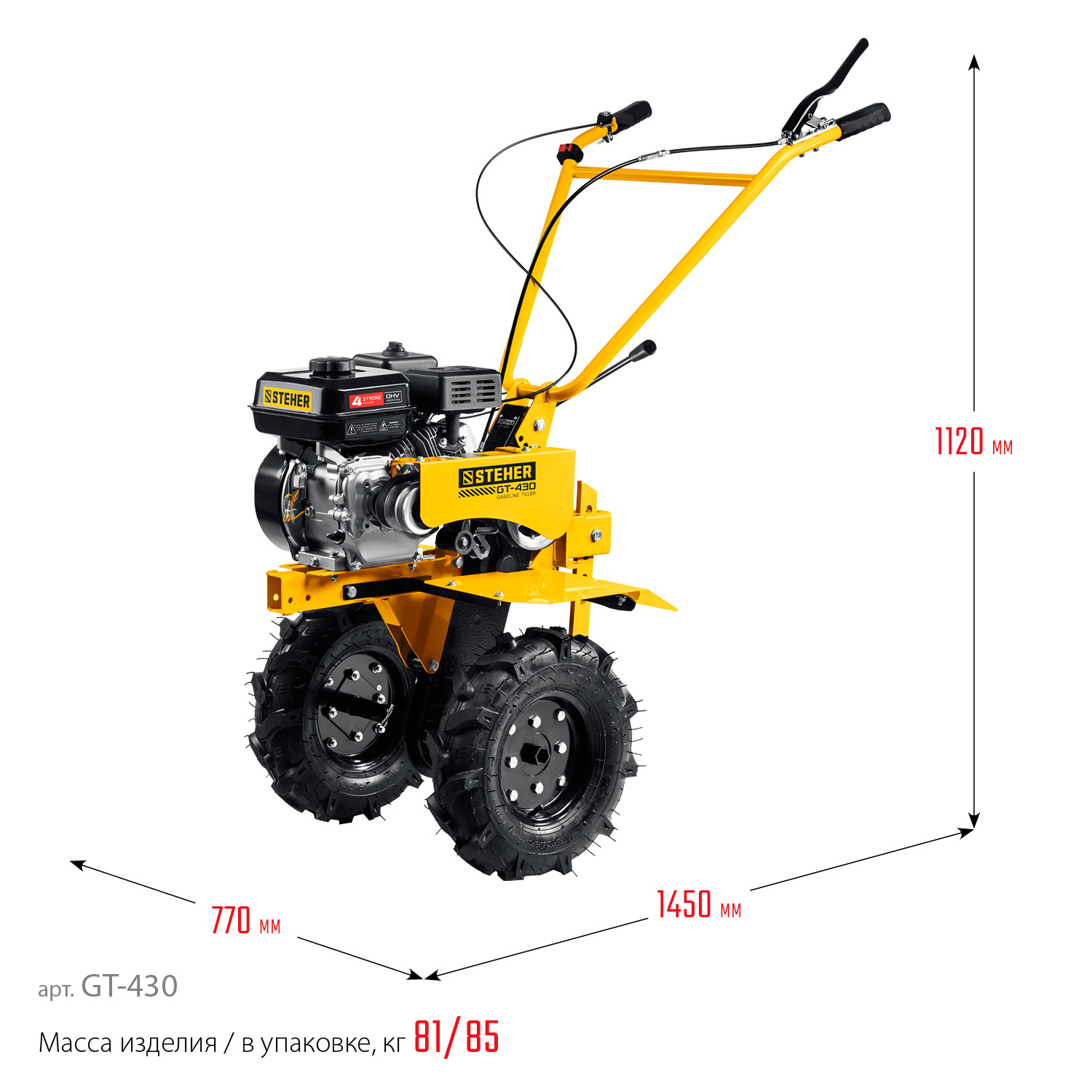 - Большие пневматические колеса обеспечивают отличную проходимость