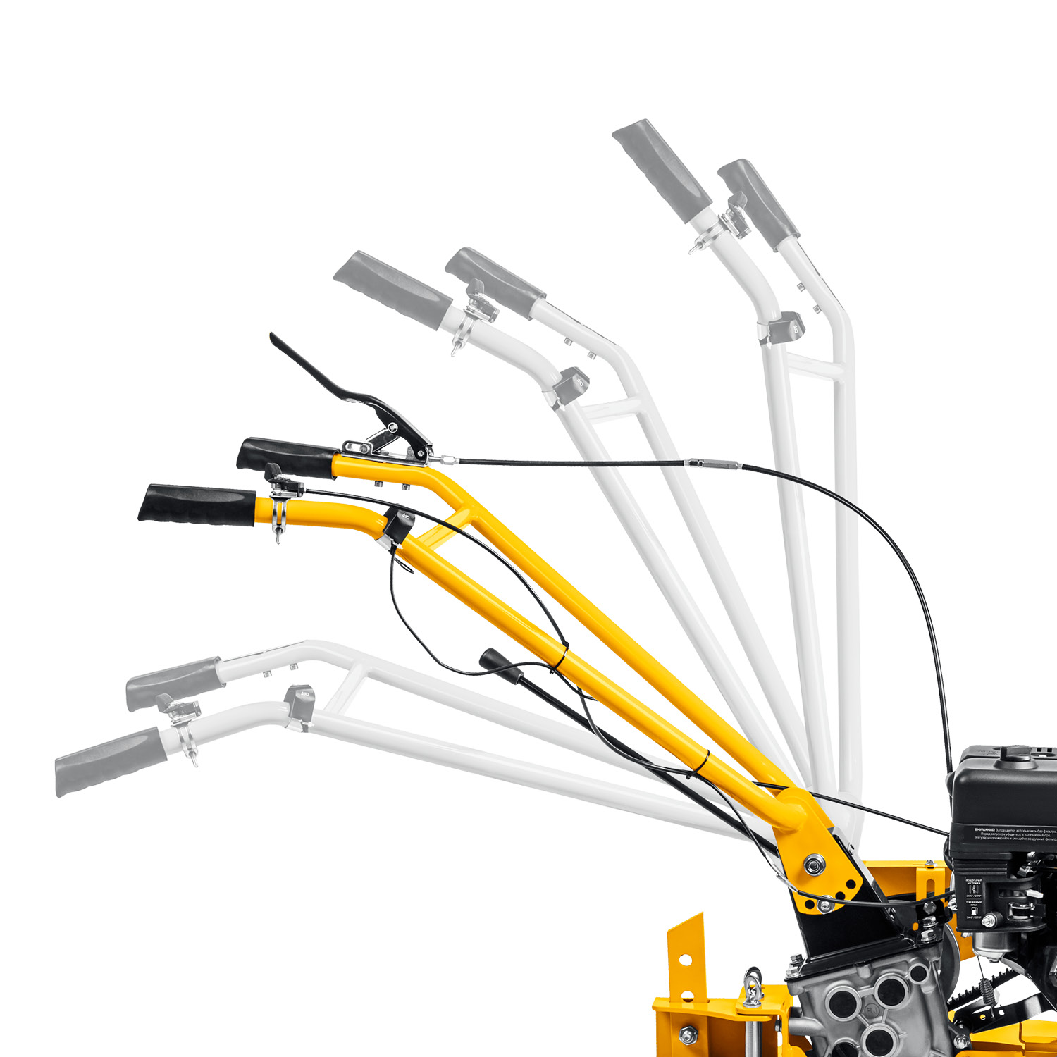 - Рукоять мотоблока с возможностью регулировки по вертикали делает управление более комфортным