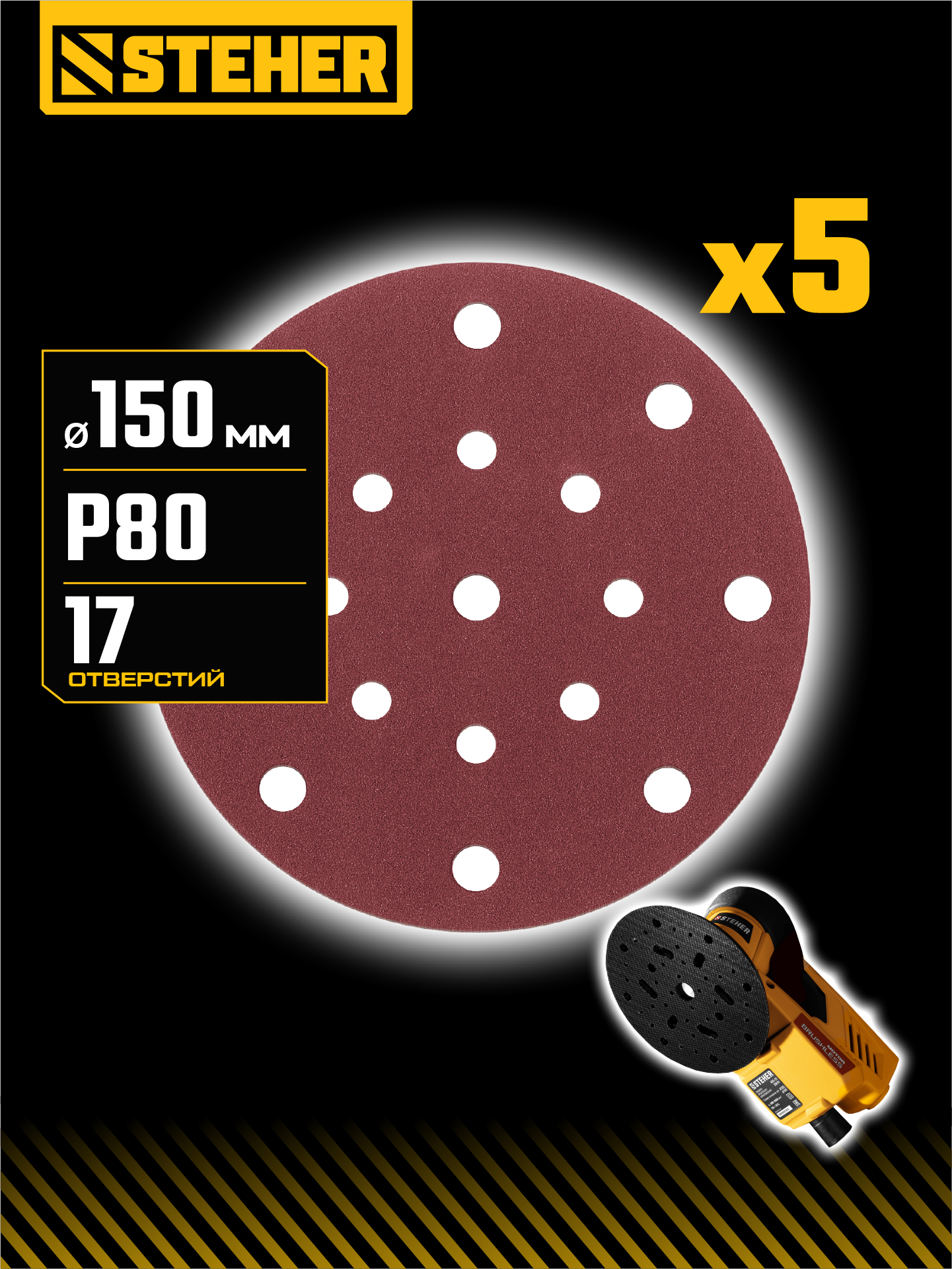 Используется на орбитальных шлифовальных машинках для грубой зачистки древесины, металла, пластика и других материалов.