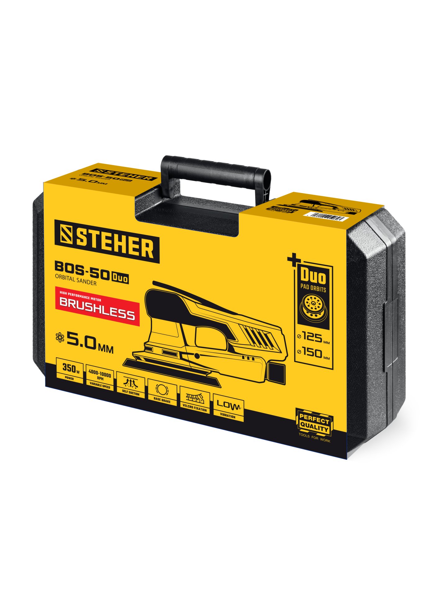 - защита от перегрузки предохраняет оператора и изделие - Эксцентриковый ход с большим эксцентриситетом 5.0 мм вкупе с вращательным движением имитирует ручное шлифование и предотвращает повреждение поверхности, т.к. на каждом обороте абразив движется по новой траектории