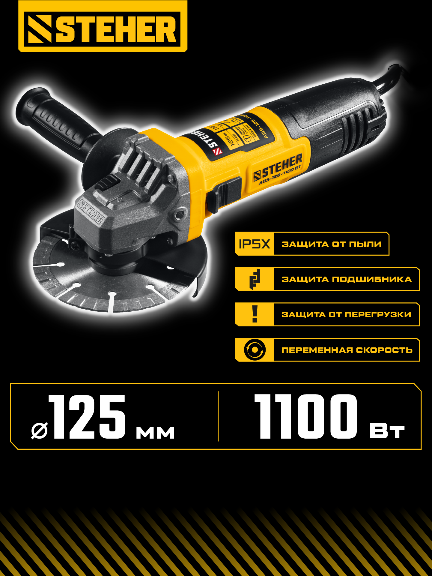 - Защита изделие от перегрузки отключением двигателя при заклинивании диска