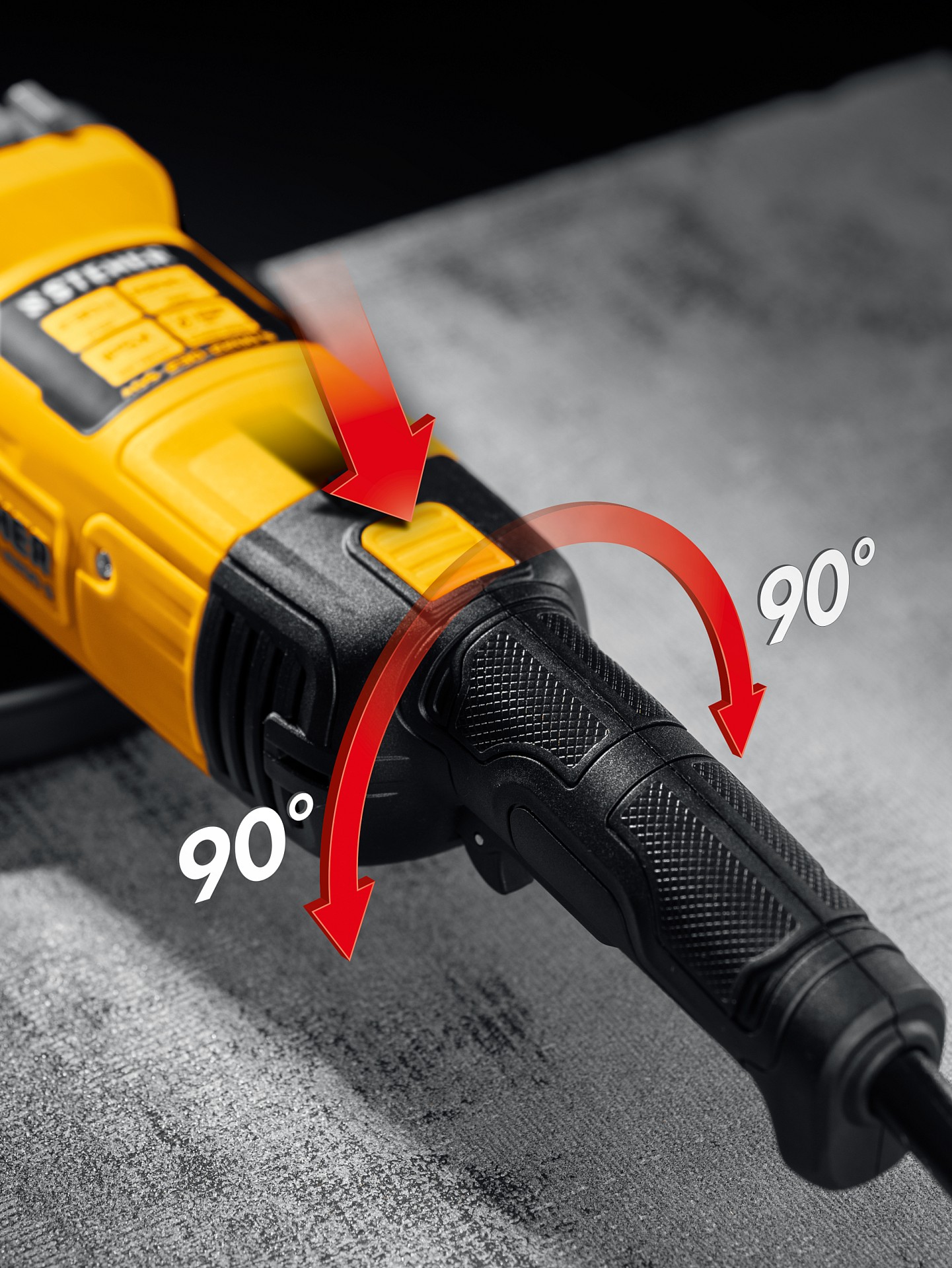 - Широкий эргономичный выключатель с пылезащитой, блокировкой непреднамеренного включения, а также фиксацией во включенном положении