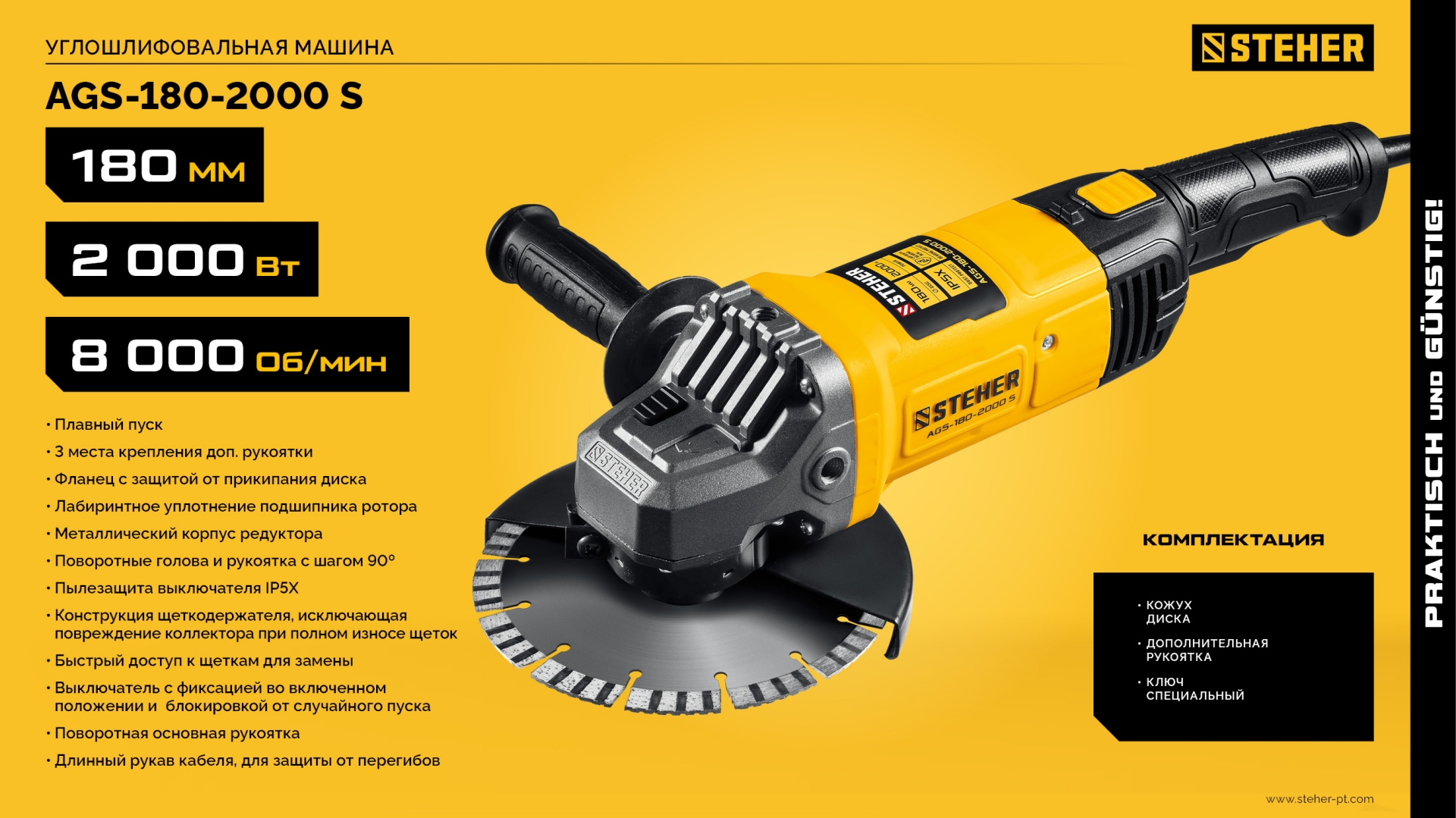 - Фирменная дополнительная рукоятка, устанавливаемая в трех положениях