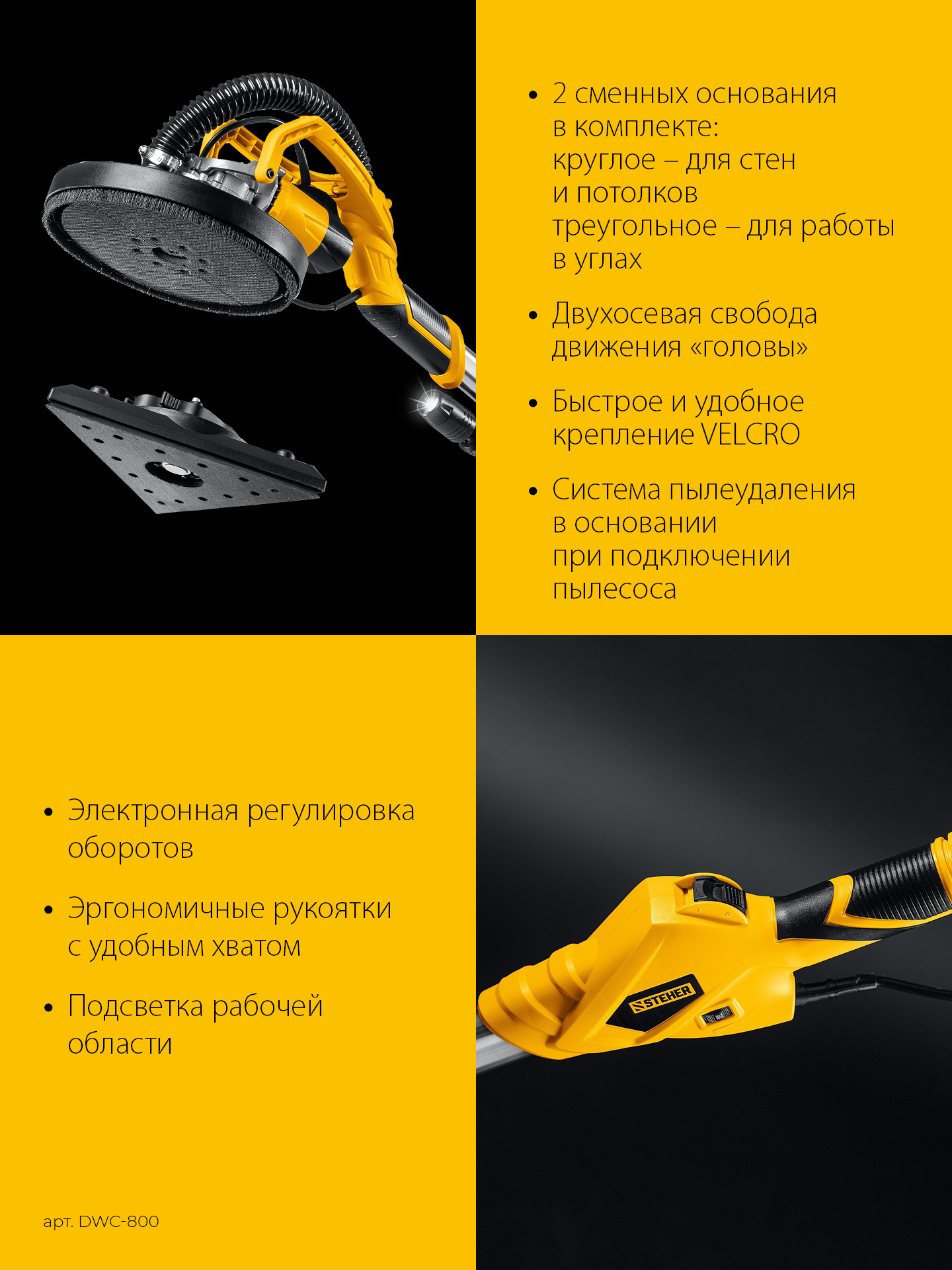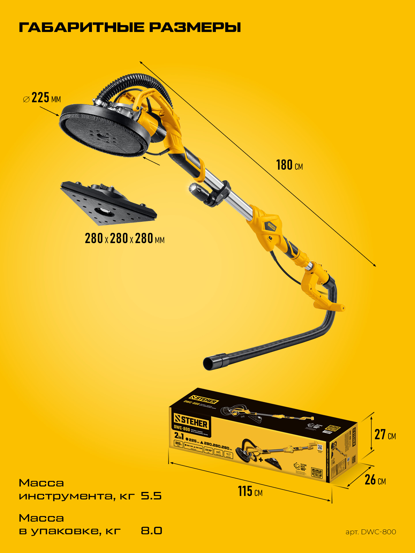 - Диаметр основания 225 мм ускоряет обработку больших поверхностей