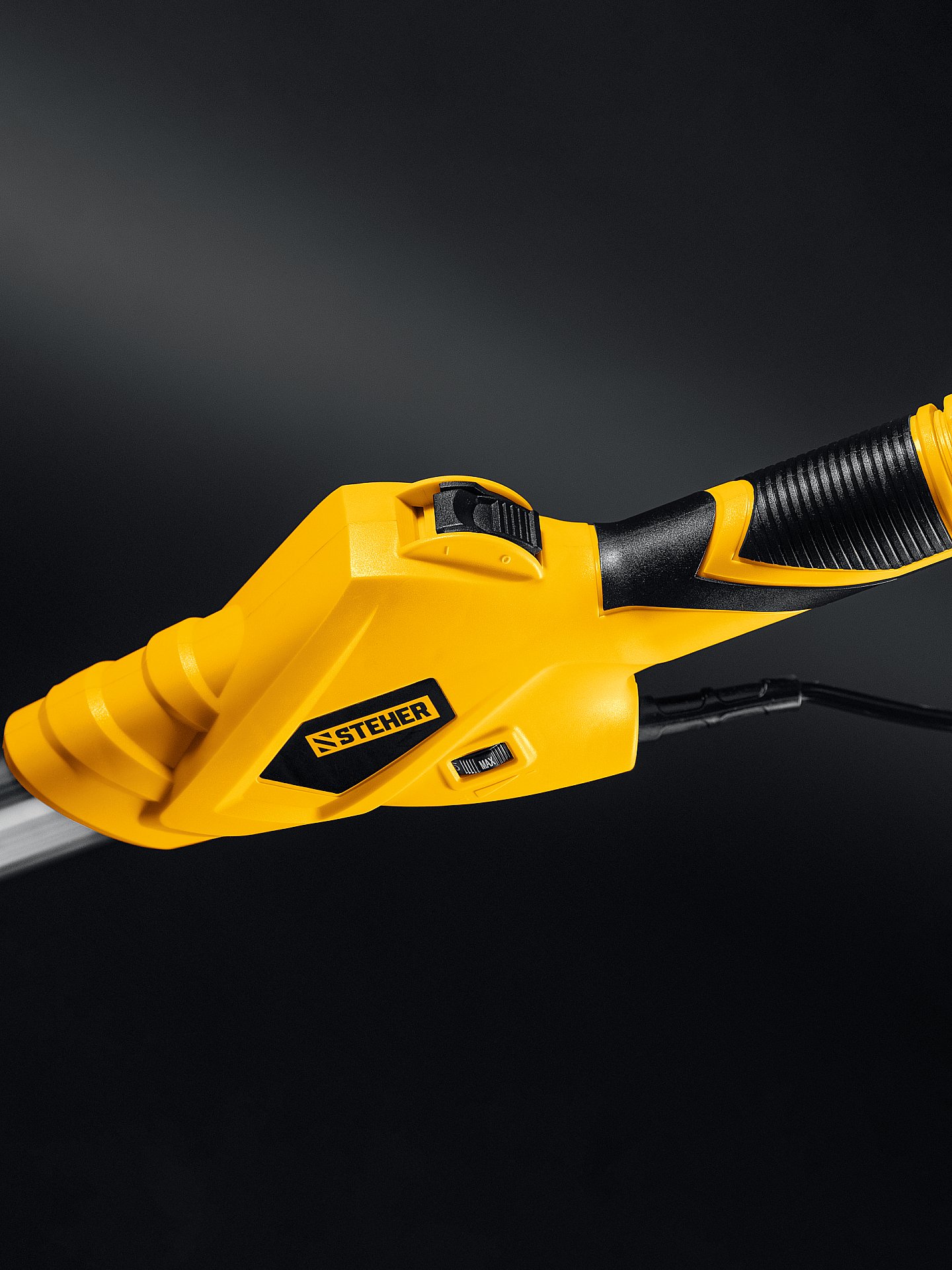 - Раздвижная задняя рукоятка позволяет настроить инструмент под свой рост и необходимую высоту обработки