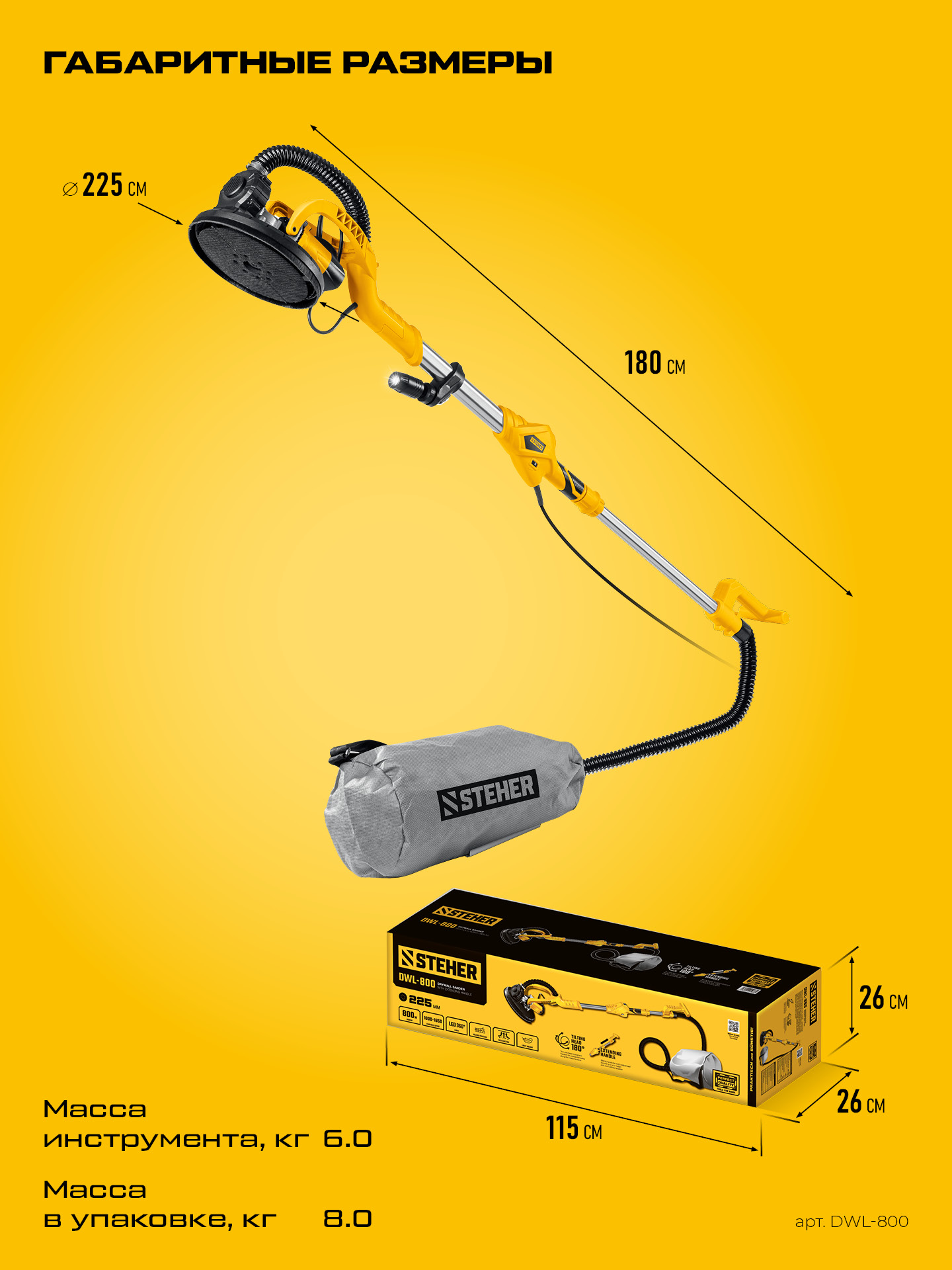 - Диаметр основания 225 мм ускоряет обработку больших поверхностей