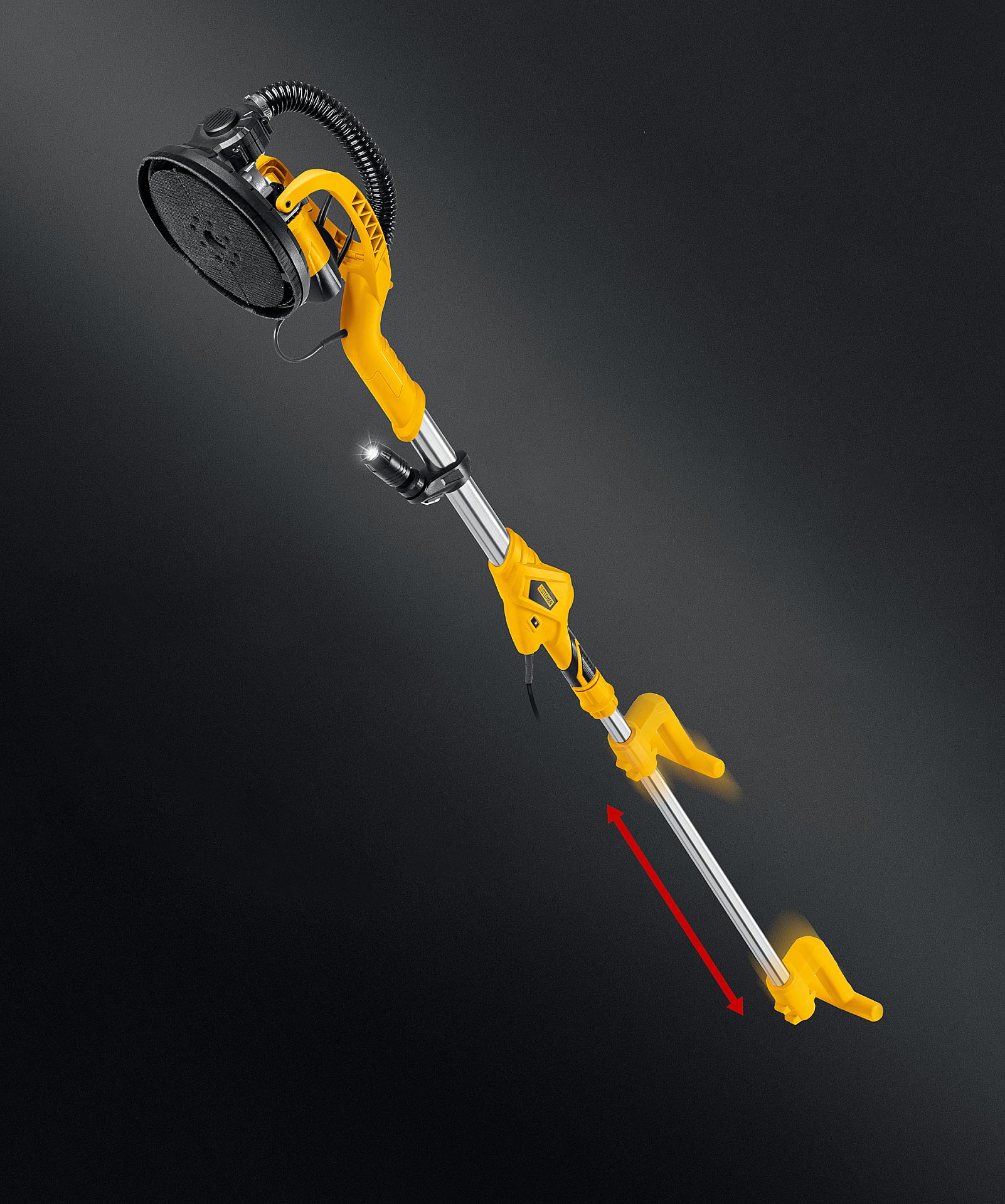 Машина шлифовальная для стен (жираф) - незаменимый инструмент для обработки как горизонтальных, так и вертикальных поверхностей. Раздвижная рукоятка позволяет отрегулировать инструмент под свой рост и дотянуться во все точки без лестницы. Минимальное количество пыли при работе за счет возможности подключения пылесоса или принудительного отвода пыли в мешок