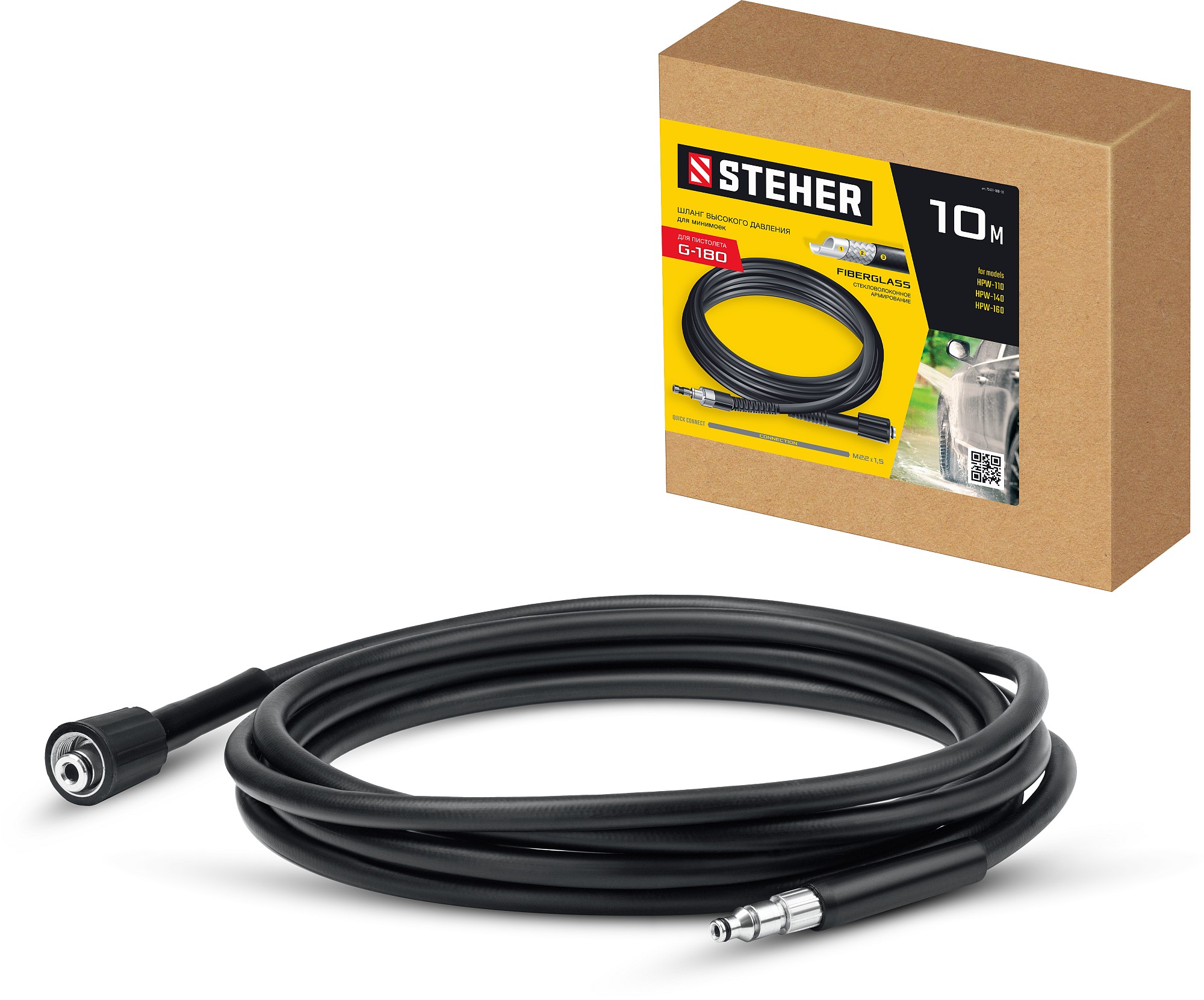 - Длина 10 м позволяет не прерывать работу для перемещения мойки