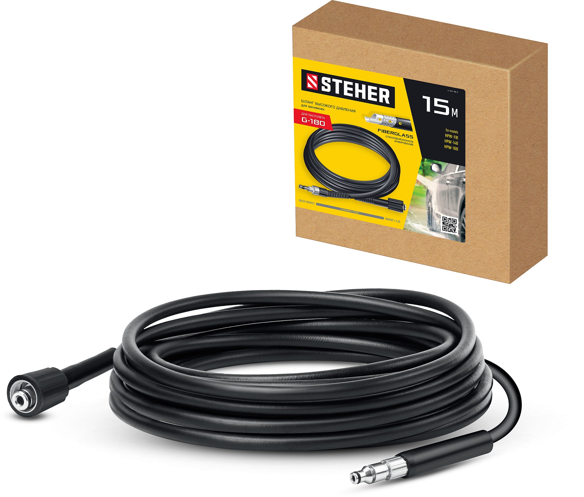 - Длина 15 м позволяет не прерывать работу для перемещения мойки