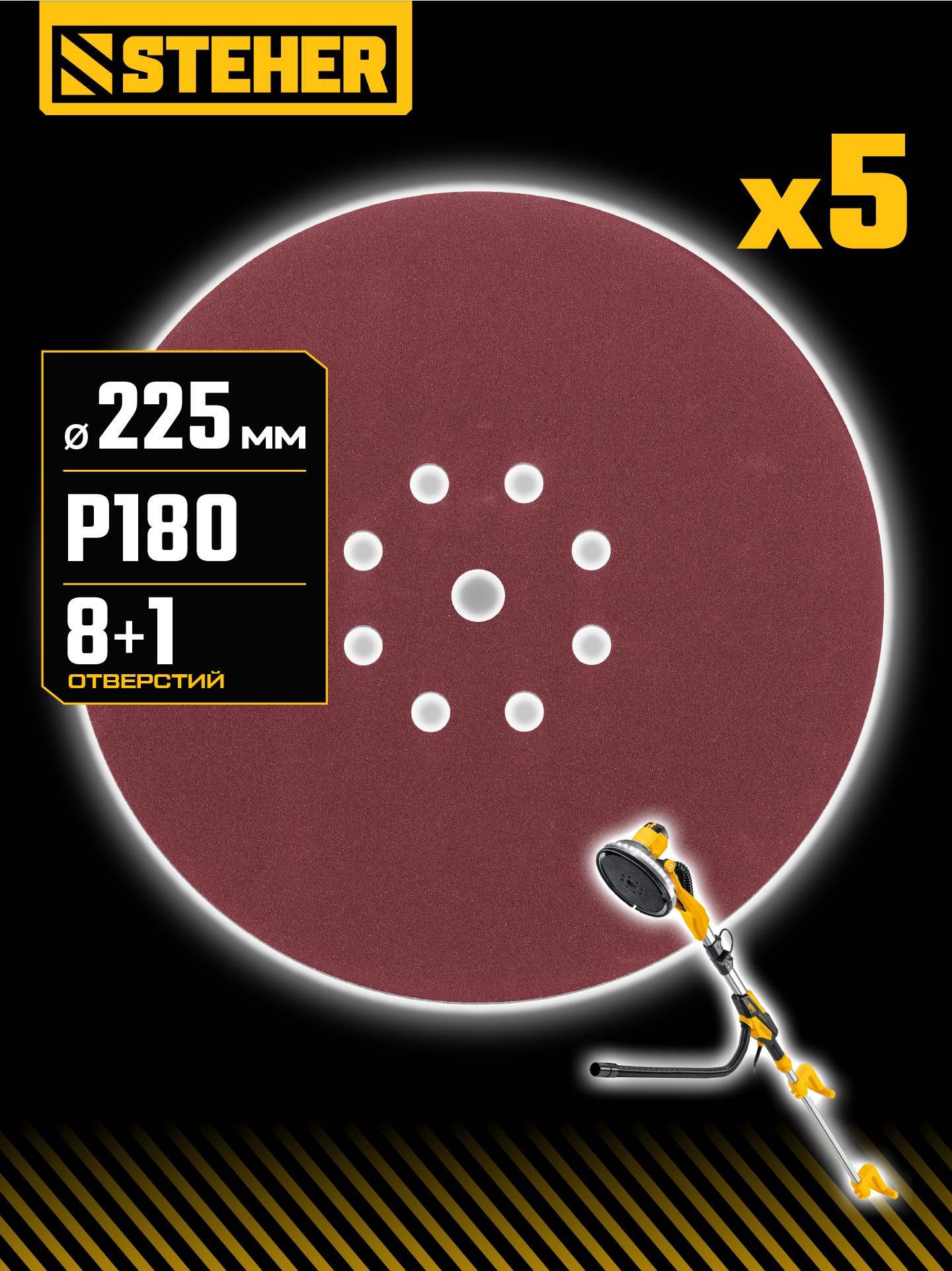 STEHER GIRAFFE 225 мм, Р180, шлифовальный круг на липучке, 9 отв., 5 шт. (35681-180)