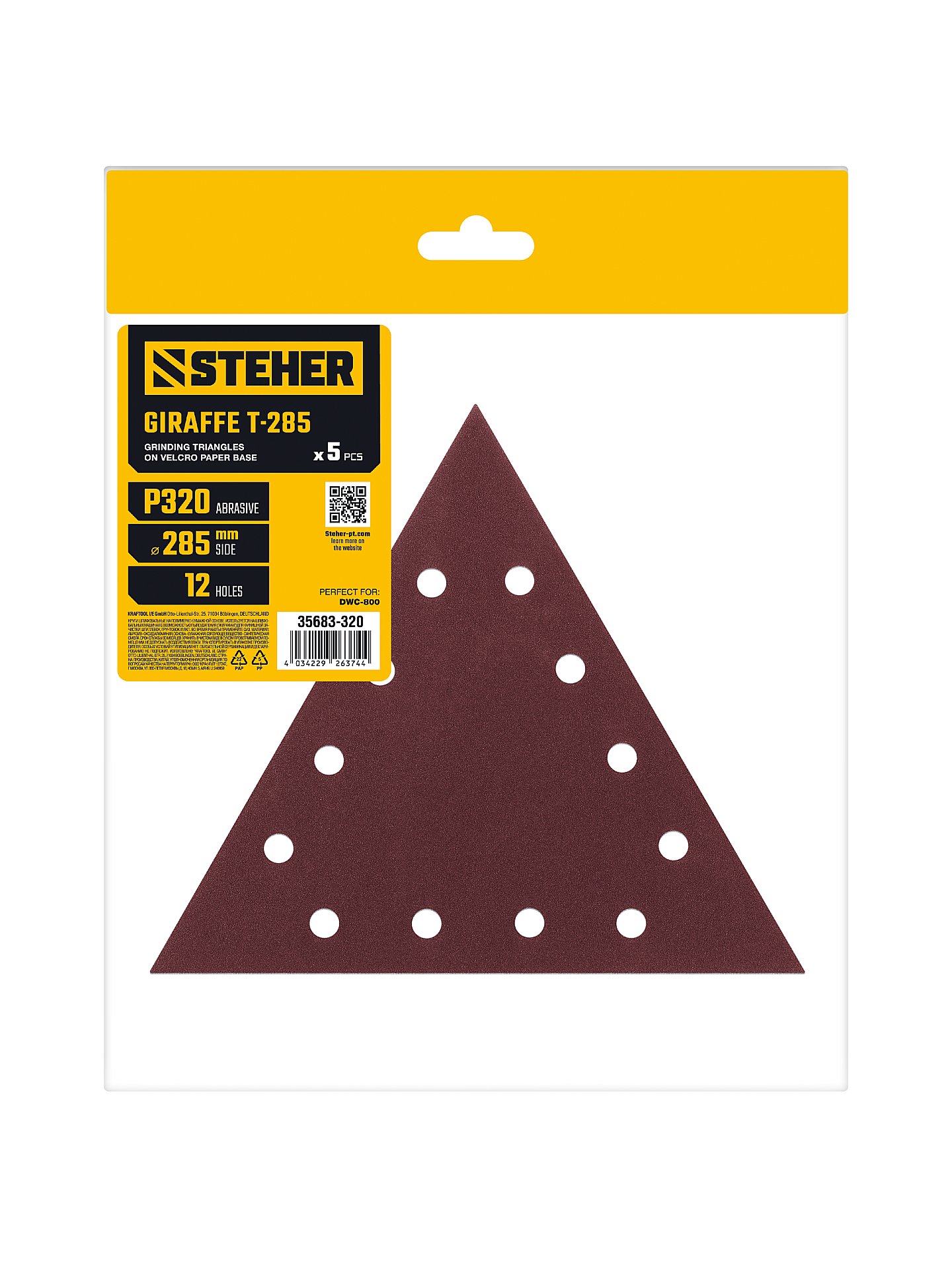 STEHER GIRAFFE T-285 мм, Р320, шлифовальный треугольник на липучке, 12 отв., 5 шт. (35683-320)