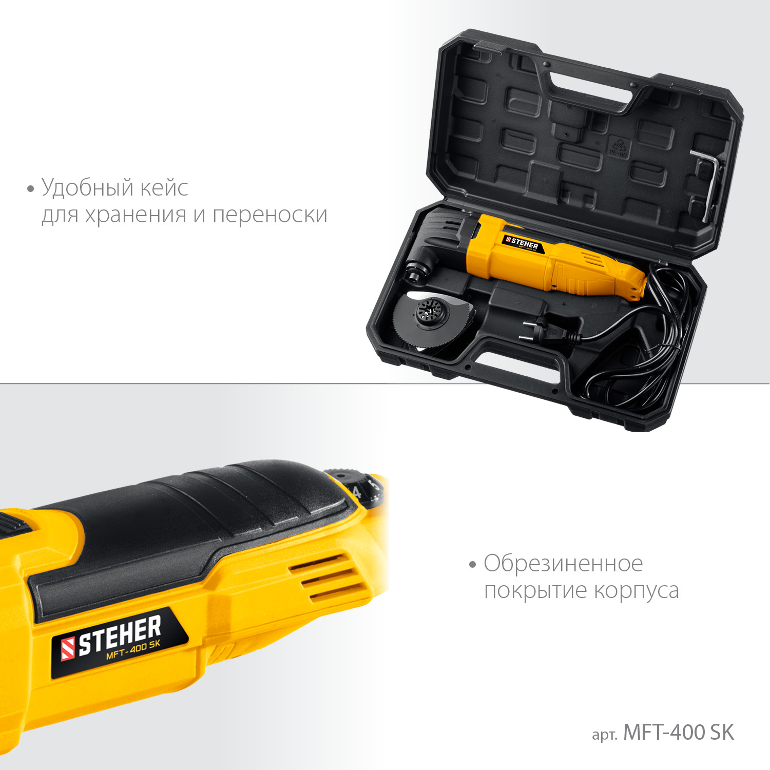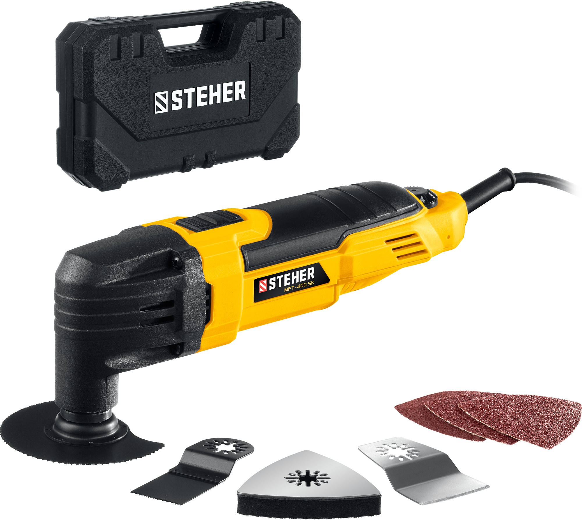 Реноватор Steher - универсальное устройство для специфических работ - выпиливание внутренних отверстий, пиление в труднодоступных местах, тонкое шлифование малогабаритных деталей. Большой угол колебаний 3 градуса в сочетании с широким спектром регулировки частоты обеспечивают эффективную работу с любым материалом. Расширенная комплектация включает в себя базовый набор насадок для начала работы сразу после покупки и удобный кейс для хранения и переноски