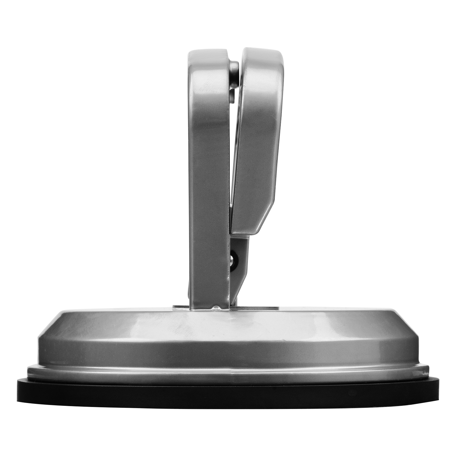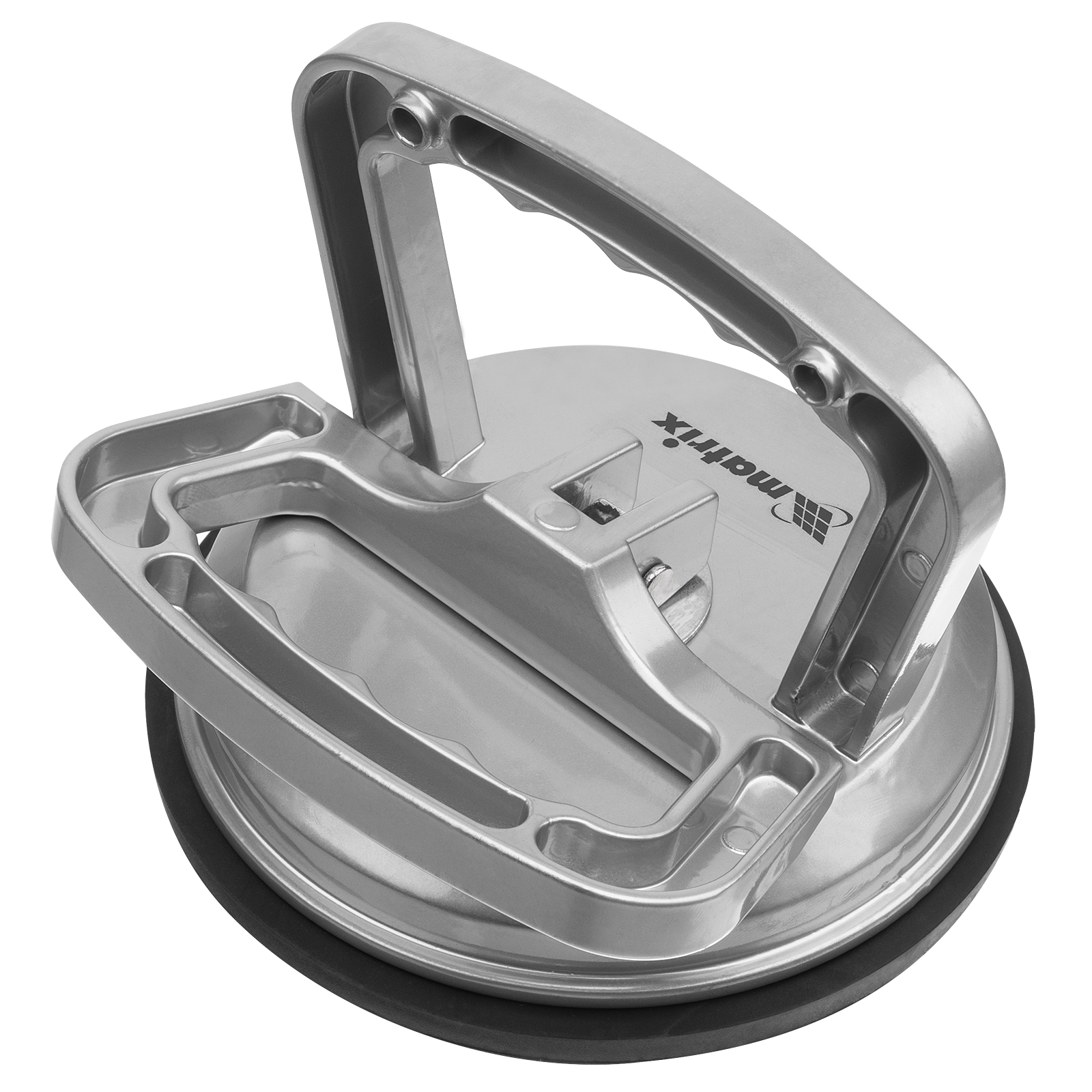 Алюминиевый одинарный стеклодомкрат Matrix 875204 позволяет поднимать, переносить и устанавливать стекла, зеркала, плитку, листовой металл и другие гладкие материалы. Двойная рукоятка складывается и надежно фиксирует присоску на поверхности, не повреждая ее. Стеклодомкрат позволяет длительное время удерживать груз весом до 50 кг. Будет полезен во время строительства, ремонта, а также пригодится в быту.