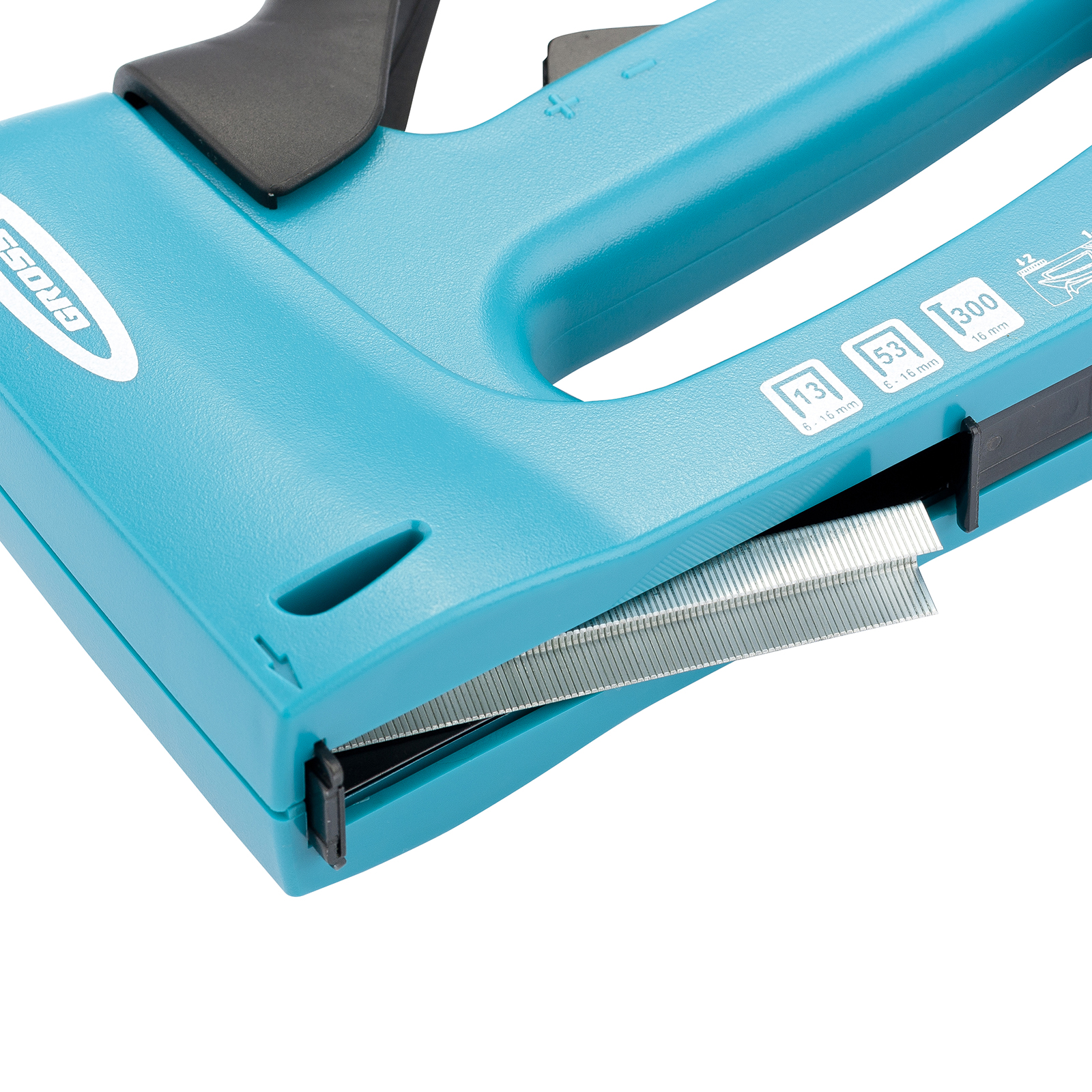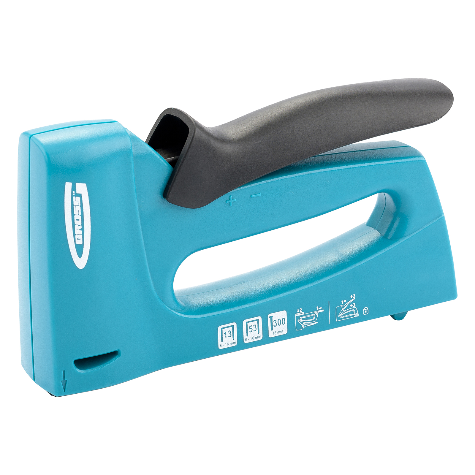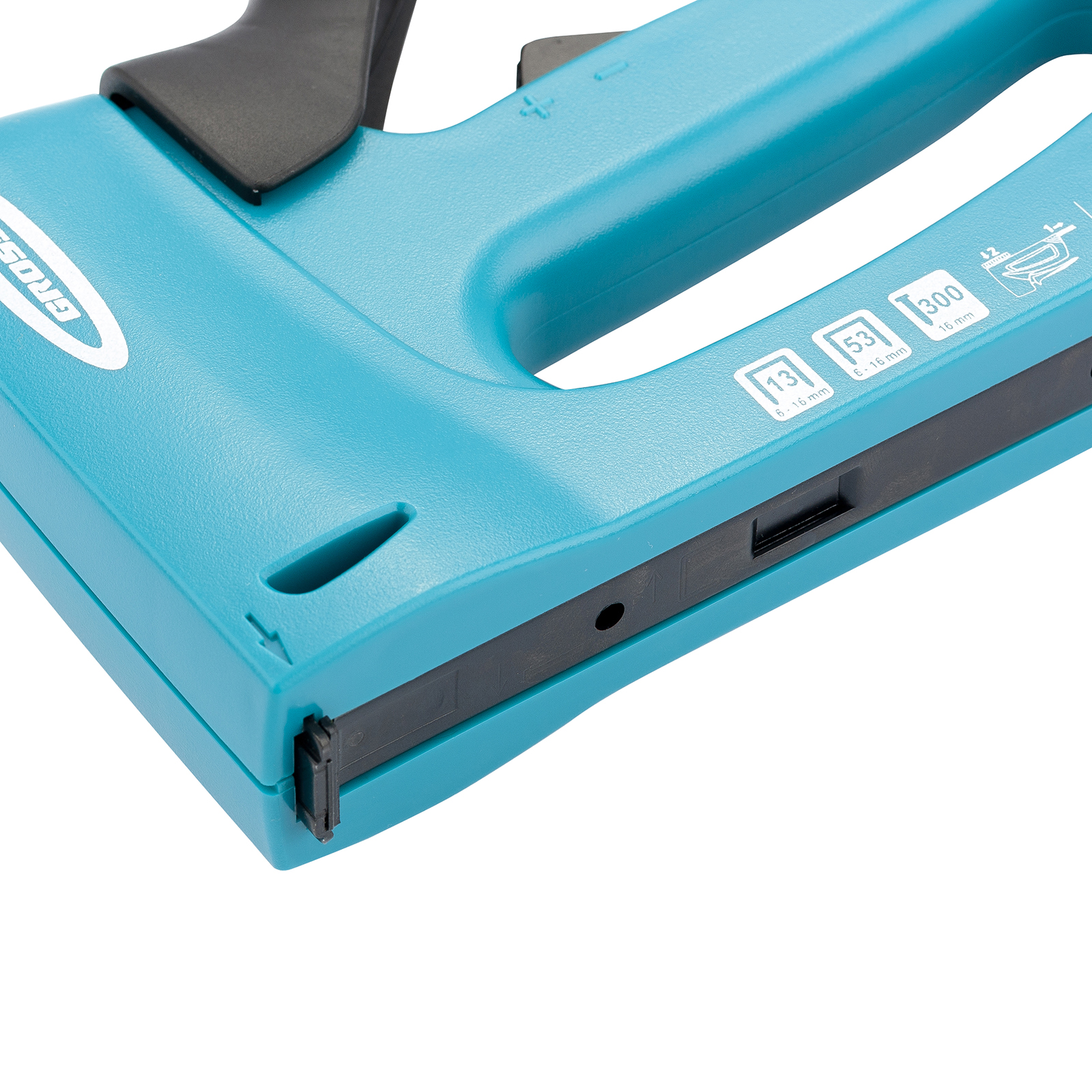 Мебельный степлер Gross 41003 в пластиковом корпусе, с функцией регулировки силы удара, совместим со скобами типа 13, 53 размером 6-16 мм и гвоздями типа 300 размером 16 мм. Его используют для быстрого крепления на деревянном основании фанеры, оргалита, ДВП, ДСП, пленки, утеплителя и других листовых материалов. Корпус устойчив к повреждениям, поскольку отлит из ударопрочного пластика. Двухпозиционный переключатель позволяет регулировать силу удара в зависимости от длины скоб и твердости материала. Действия в труднодоступных местах облегчает длинный тонкий носик. Инструмент идеально сбалансирован, что сводит отдачу к минимуму. Степлер пригодится при сборке и обшивке мебели, укладке ковровых покрытий и изоляционных материалов, выполнении багетных работ. Подходит для профессионального применения.