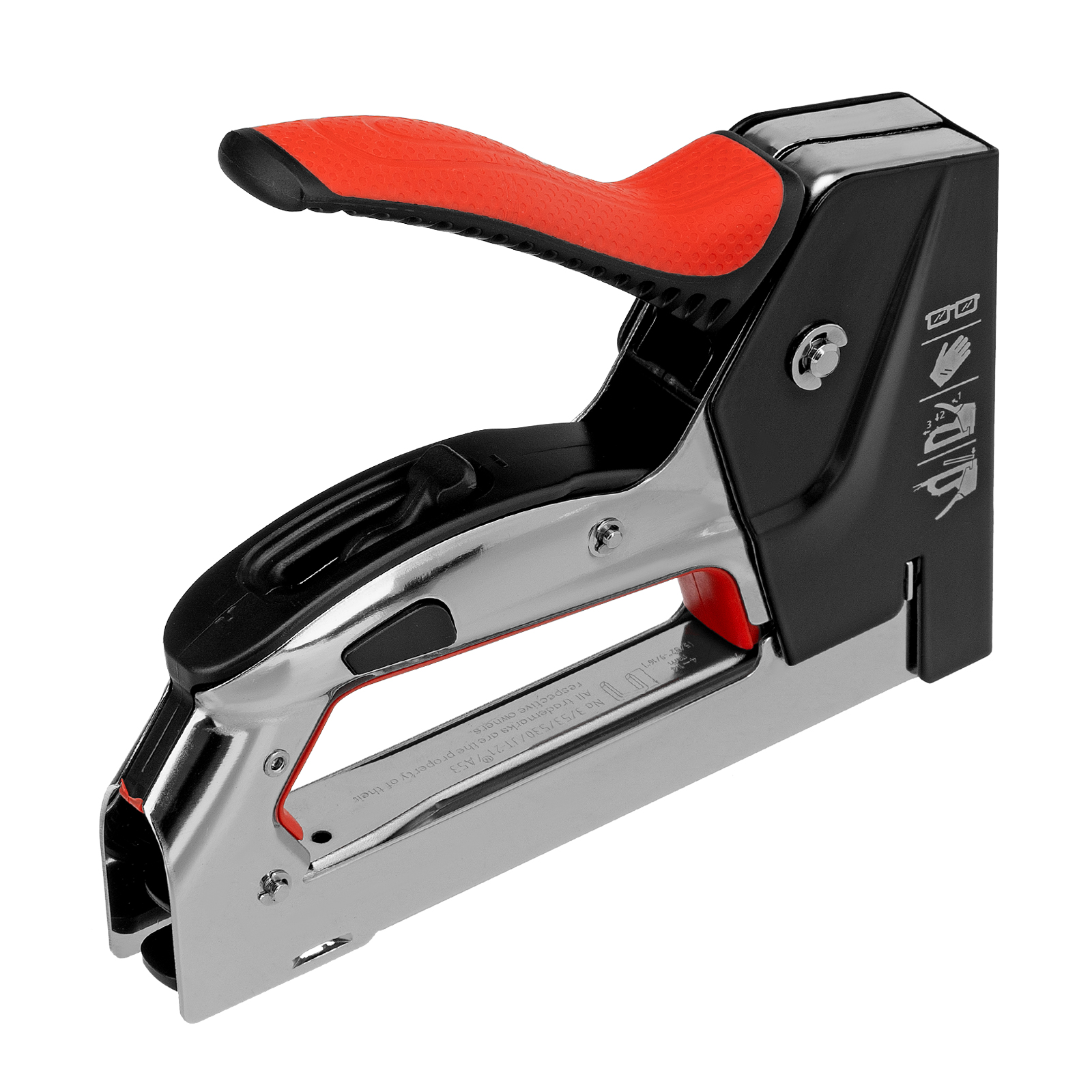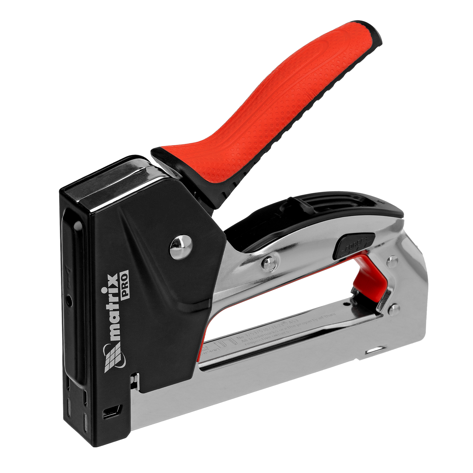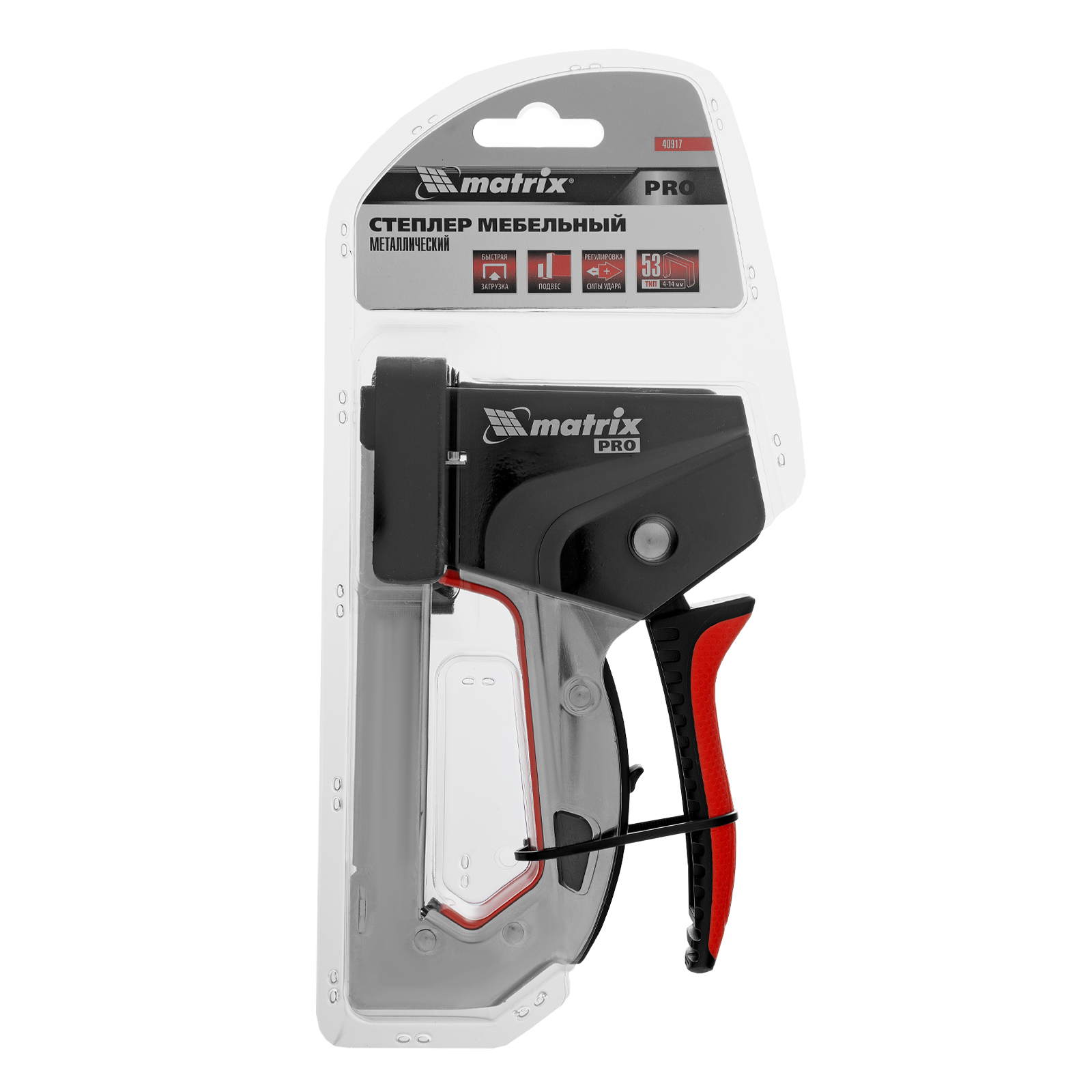 Стальной мебельный степлер Matrix PRO 40917 с механизмом быстрой загрузки скоб помогает быстро закрепить на деревянном основании фанеру, оргалит, ДВП, ДСП, ПВХ-пленку или теплоизоляционный материал с помощью скоб 53 размером 4-14 мм. Двухпозиционный регулятор силы удара позволяет устанавливать глубину забивания скобы в зависимости от твердости скрепляемых материалов. Инструмент подходит для сборки или обивки мебели, укладки ковровых покрытий, проведения ремонтных и отделочных работ.