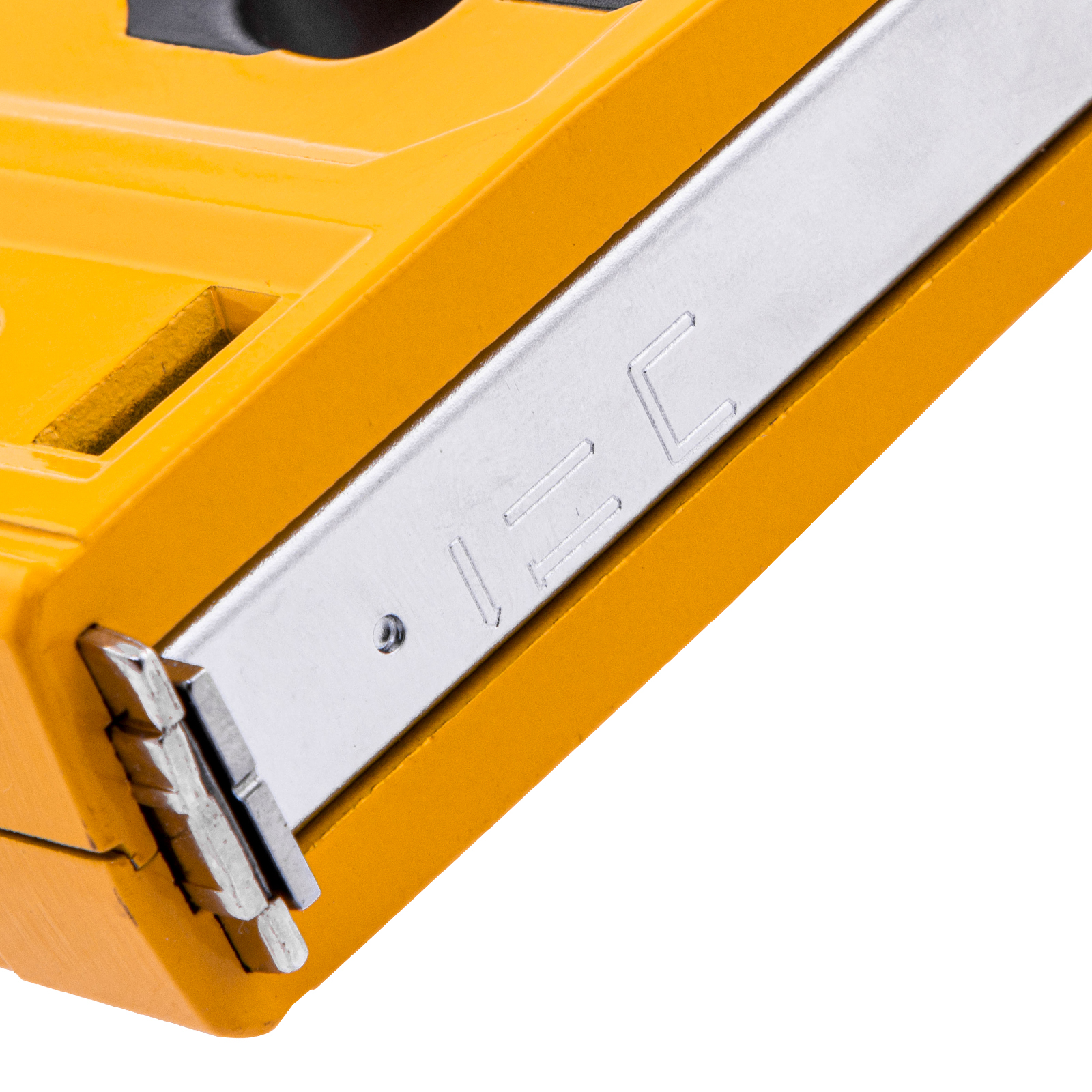 - Расходники в комплекте — степлер поставляется со скобами 53 (200 шт.) и 140 (100 шт.), гвоздями 300 (100 шт.) и штифтами 500 (100 шт.).
