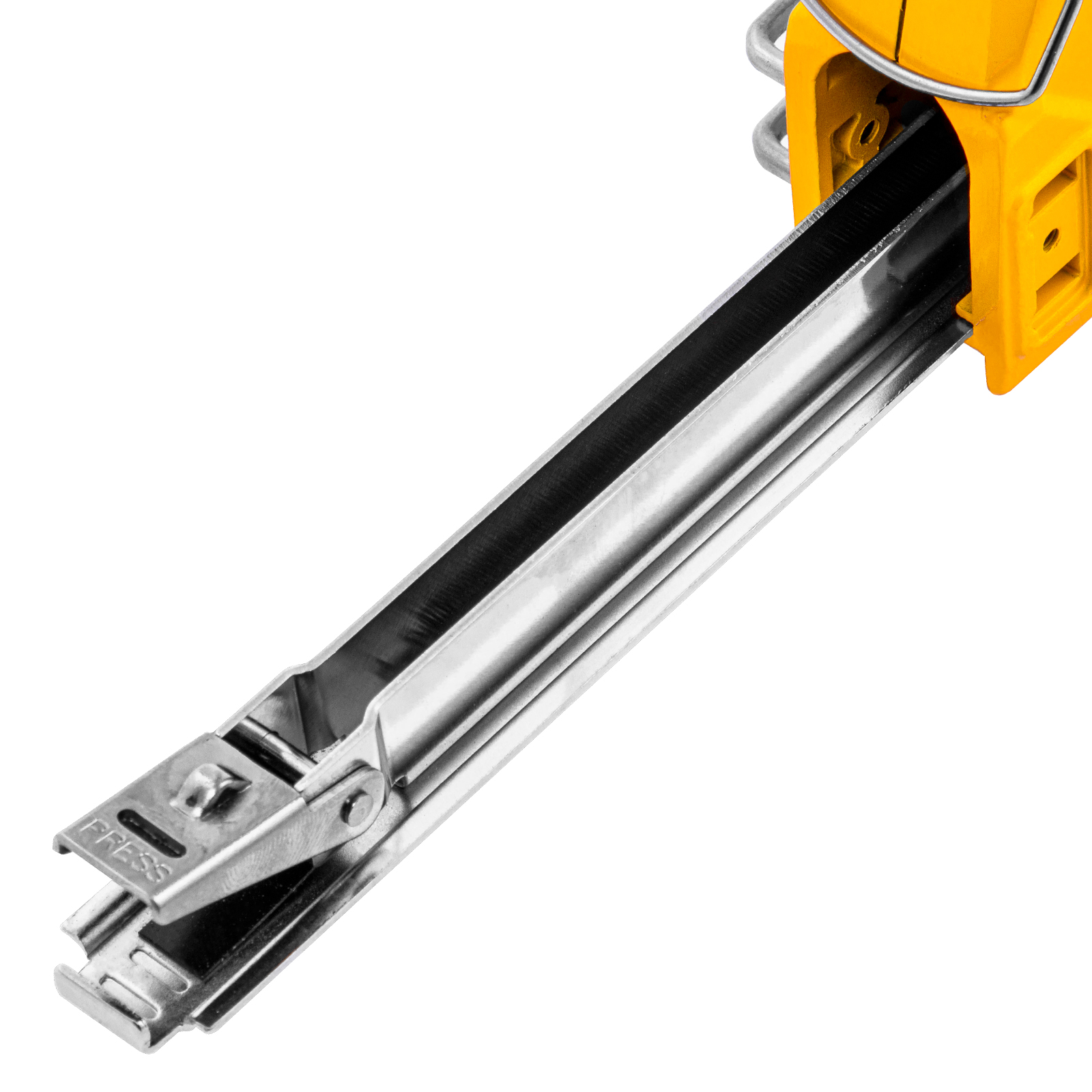 - Простая подготовка к работе — благодаря выдвижной обойме загрузка скоб в скобоприемник занимает несколько секунд.