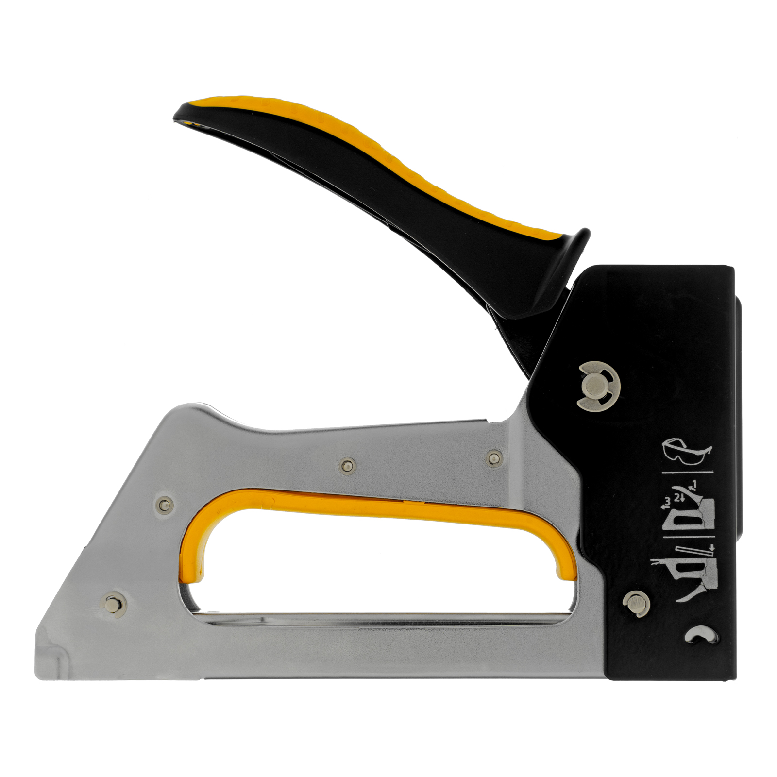 - Расходники в комплекте (200 шт.) — крепеж не нужно приобретать отдельно, степлер полностью готов к работе.