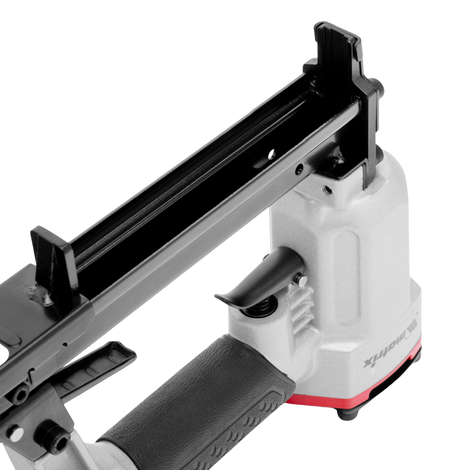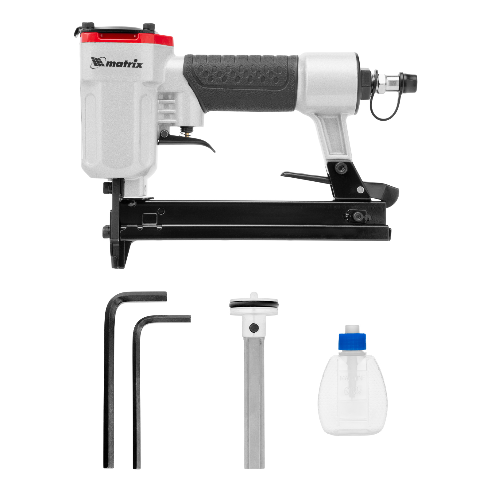 Пневматический степлер Matrix 57420 используется с прямоугольными скобами 20GA длиной от 10 до 22 мм. Его применяют для сборки деревянных каркасов и мебели, ремонта кровли, утепления домов, монтажа окон и дверей, строительства бытовок.