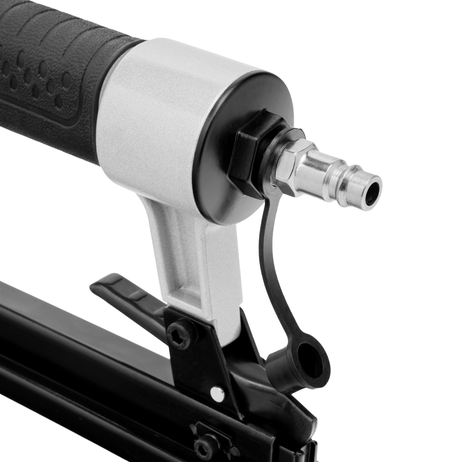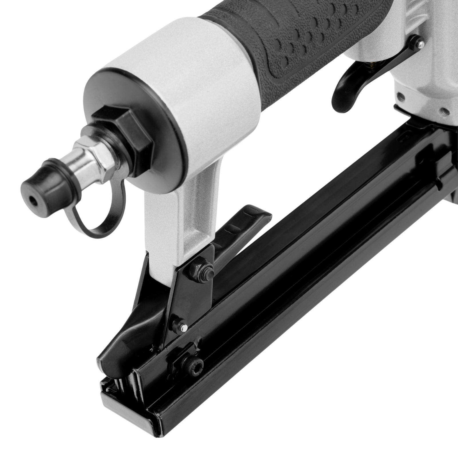 - Продуманная конструкция — благодаря быстрому доступу к магазину зарядить степлер можно за несколько секунд.