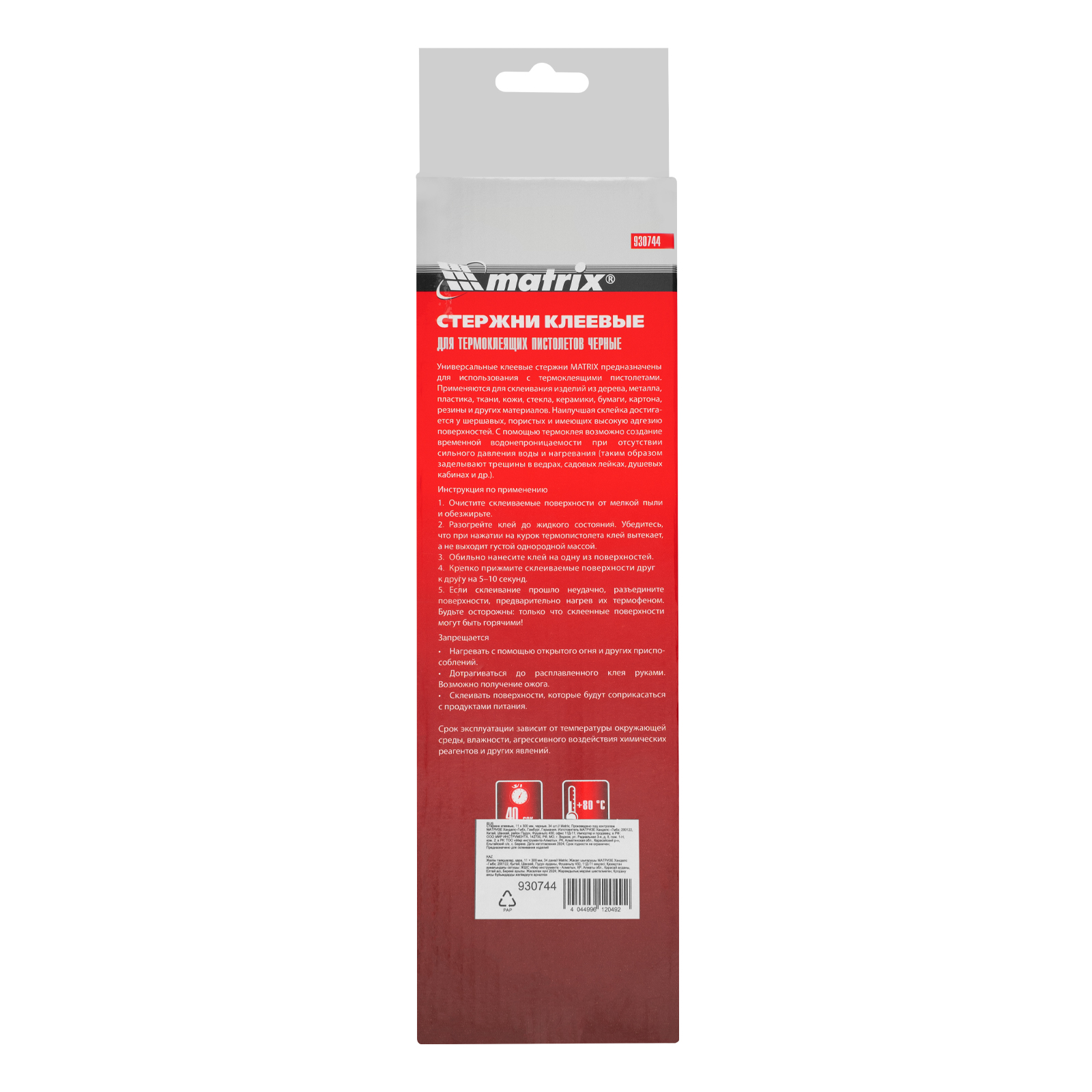 Черные клеевые стержни Matrix 930744 длиной 300 мм, общим весом 1 кг, — расходные материалы для клеевых пистолетов калибра 11 мм. Обеспечивают надежное сцепление различных материалов: бумаги, пластика, древесины, керамики, электрических плат и т.д. Подходят также для герметизации швов и трещин.