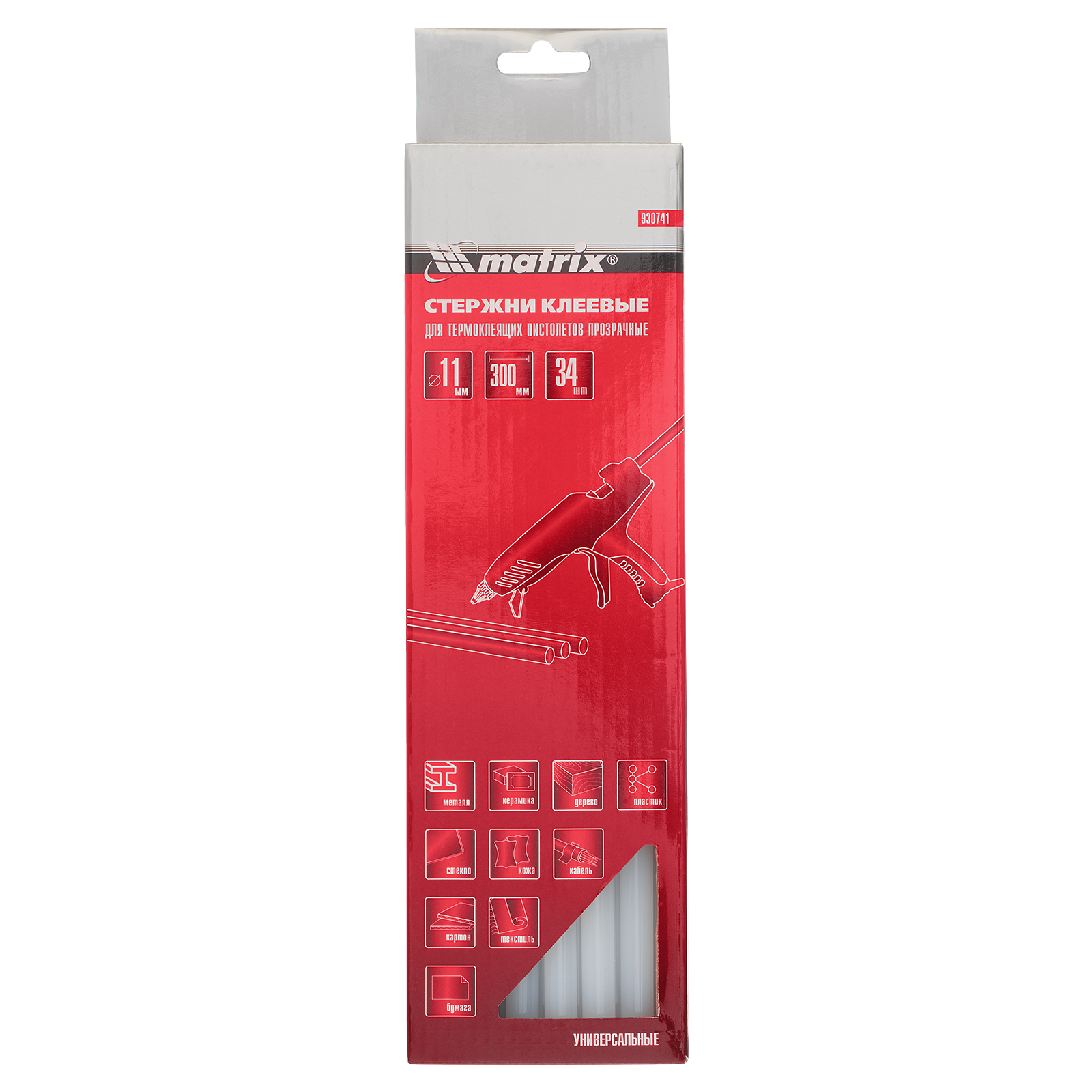 Прозрачные клеевые стержни Matrix 930741 длиной 300 мм, общим весом 1 кг, — расходные материалы для клеевых пистолетов калибра 11 мм. Обеспечивают надежное сцепление различных материалов: бумаги, пластика, древесины, керамики, электрических плат и т.д. Подходят также для герметизации швов и трещин.